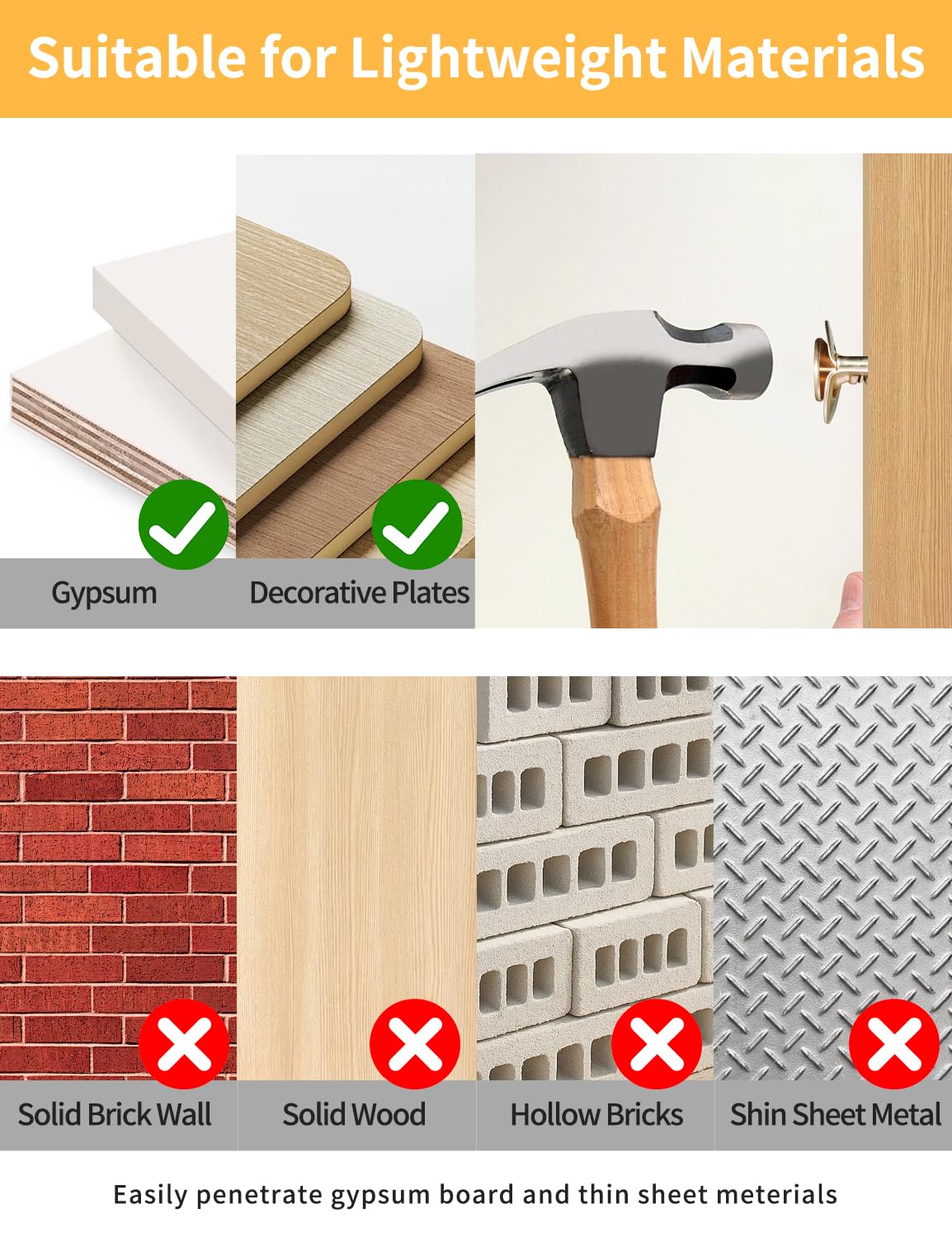 - HOLDS STRONG IN WEAK WALLS – NO CRUMBLING OR SLIPPING: Our self drilling anchor screws deliver a firm, reliable grip on drywall, hollow walls, fiber cement board,thin wood panels-even lightweight bricks or insulation boards.No cracking, no shifting-they lock in tight on any surface