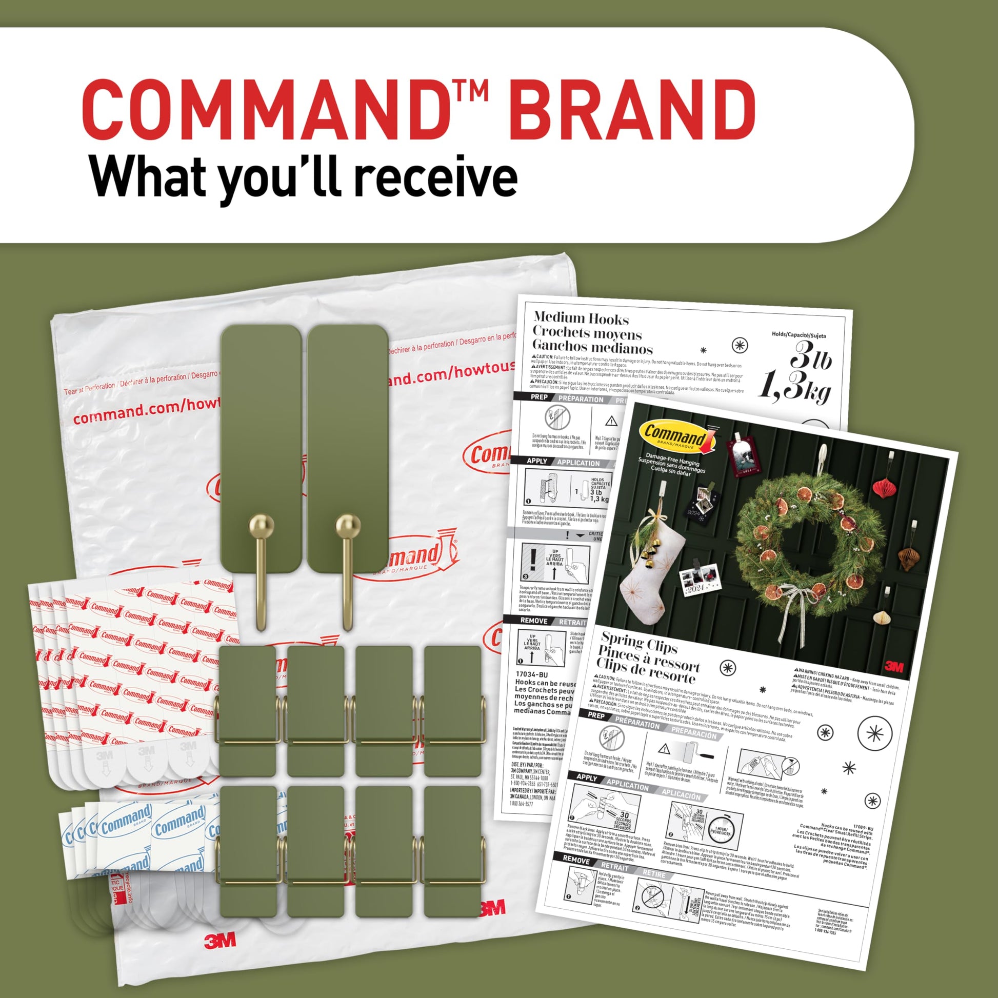 Details: It's the most wonderful time of the year! Limited Edition Command Hooks and Clips are here to help you spread cheer without leaving damage. These in-season decorative hooks and clips are all about adding festive flair down to the little details. Hang stockings and wreaths on Hooks, hold holiday cards and cookie recipes in Spring Clips. Together they let you hang what you want, where you want, without the hassle of tools, making them the best way to decorate like a pro. Command removable adhesive strips hold as long as you need them to on a variety of smooth, finished surfaces. Once the tree comes down and the guests are gone, these adhesive hooks remove cleanly with no sticky residue or damage left behind. Pick up Command Products, and get inspired to organize, decorate, personalize, and deck the halls.
