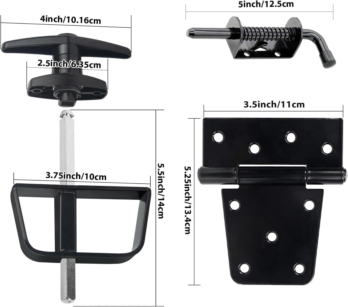 - 1.Complete Shed Door Hardware Kit: Heavy-Duty Security Essentials Included Upgrade your shed, playhouse, or outdoor structure with our all-in-one Shed Door Hardware Kit—designed to deliver robust protection. This essential set includes 6" Shed Hinges, Adjustable Barrel Bolts, and a Secure T-Handle Lock, along with other key Shed Accessories like a durable Shed Handle. Crafted for heavy-duty use, every component works together to fortify your shed door, ensuring it stays securely fastened against tampering or forced entry.
