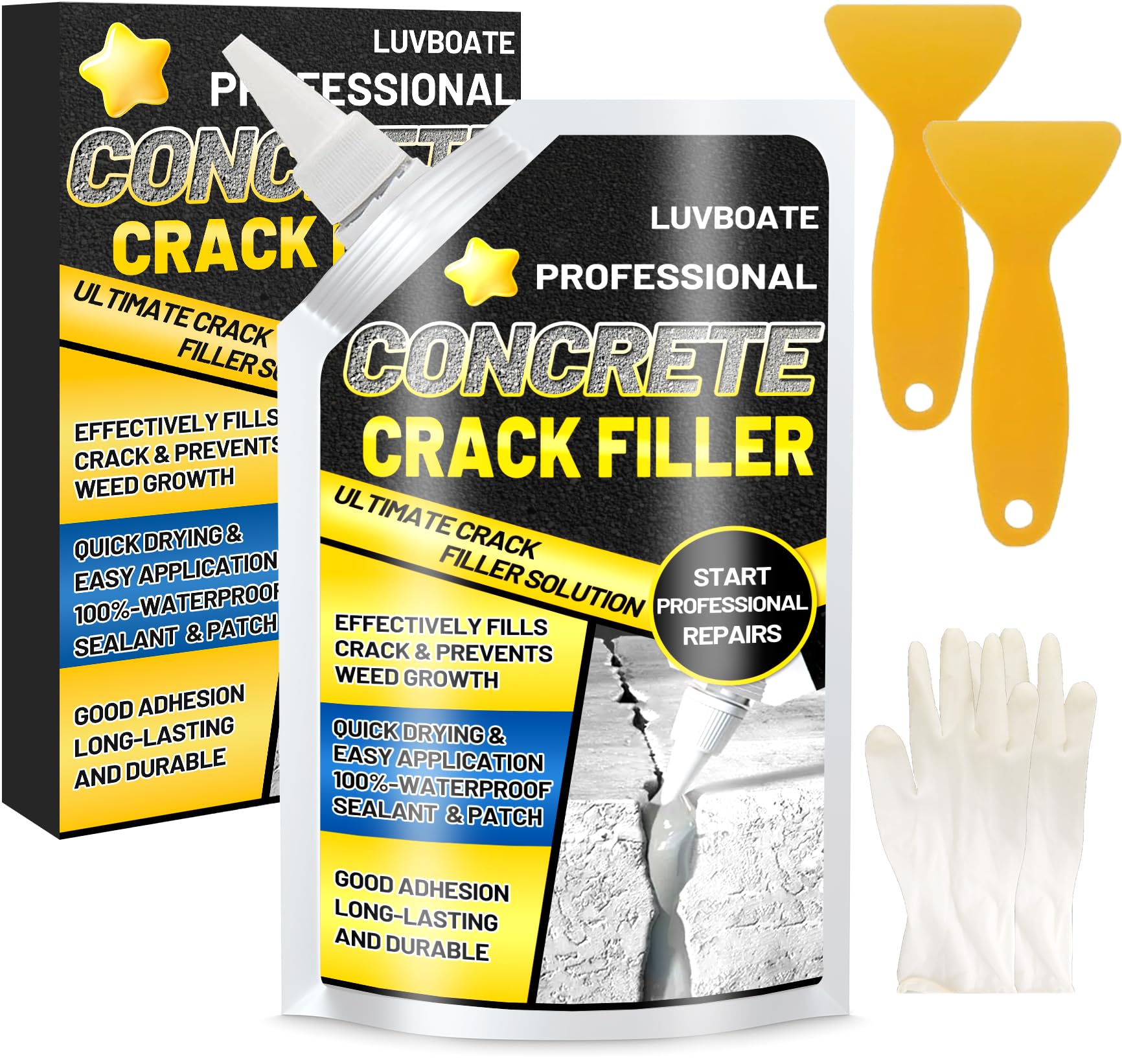 - High Flexibility and Settlement Resistance : LUVBOATE Self leveling concrete crack filler offers a high elasticity formula, making it ideal for filling a wide range of cracks. The cured concrete crack waterproofing sealant has strong adhesion and adapts to ground movement and settlement, withstanding frequent traffic and concrete expansion and contraction to ensure a durable seal.