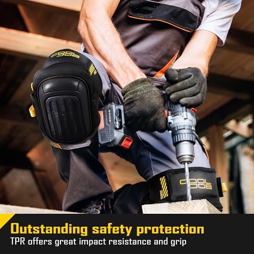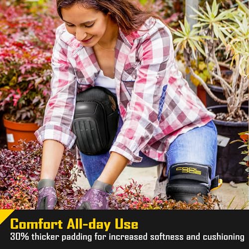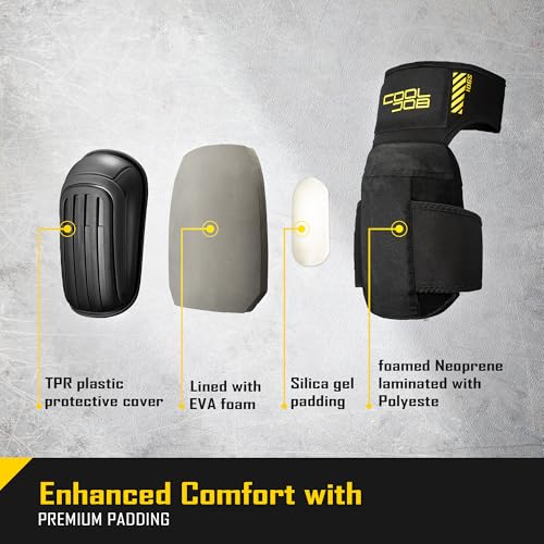 COOLJOB Professional Knee Pads with Heavy Duty Anti-Slip Cap, Comfortable Foam Cushion and Extra Thick Gel Padding for Construction Flooring, Reinforced & Adjustable Straps, Black