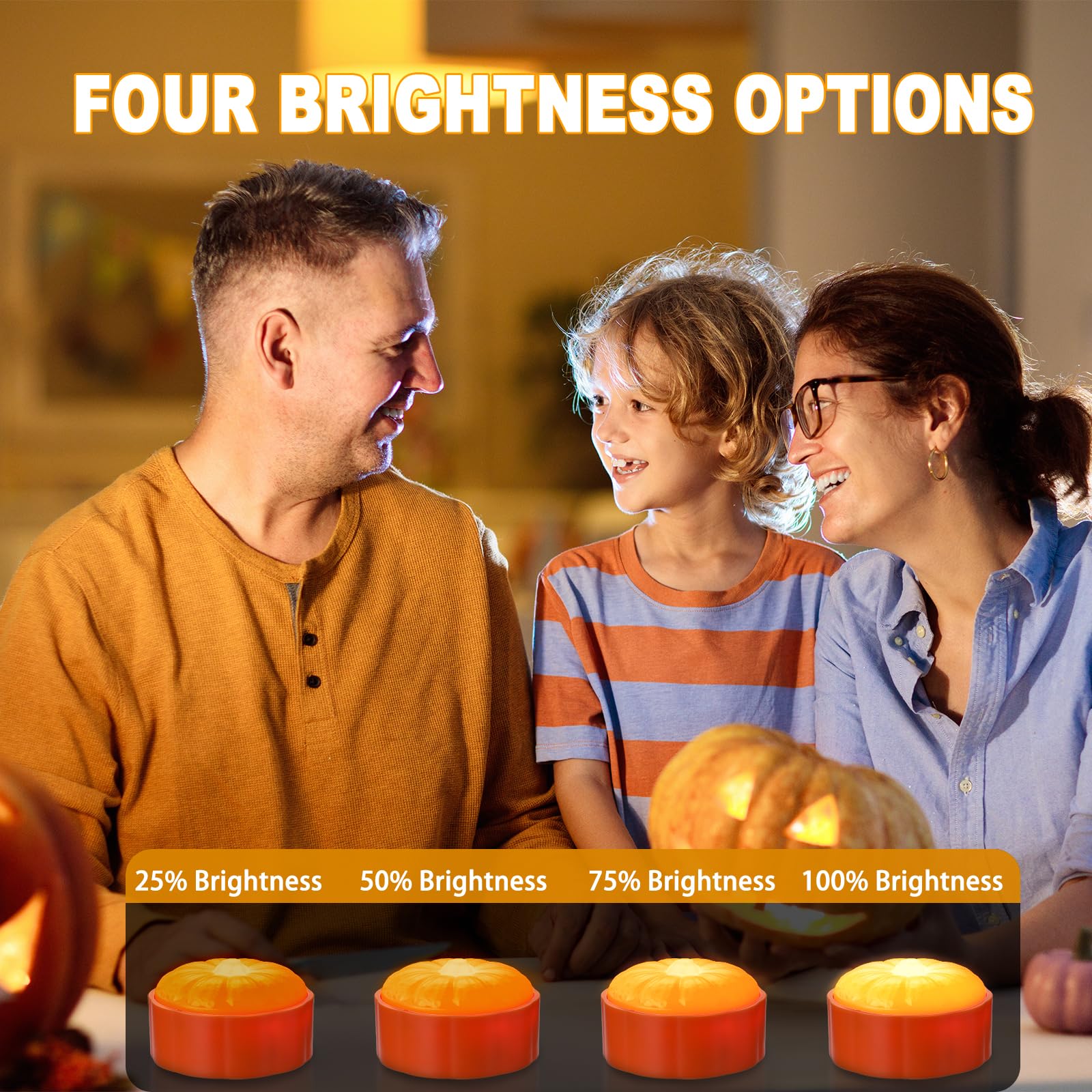 Cosyiker 4-Pack Halloween LED Pumpkin Lights with Remote and Timer, Bright/Flickering Battery Operated Jack-O-Lantern Orange/White Halloween Decor Flameless Candles for Pumpkin Decorations