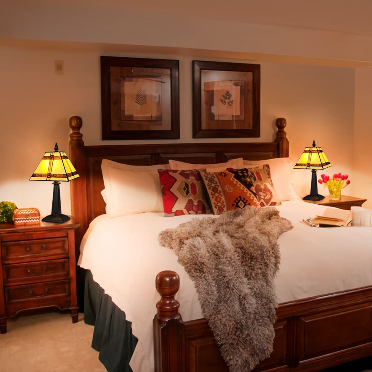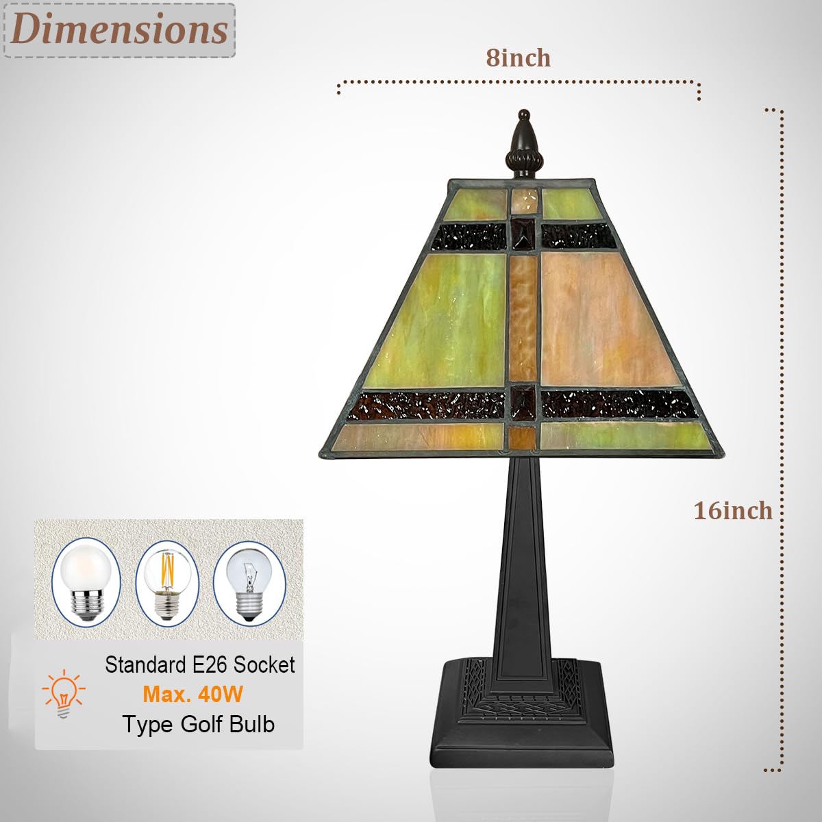 COTOSS Tiffany Table Lamps,Small Handcrafted Stained Glass Accent Table Light,Amber Mission Style Antique Desk Lamp for Bedroom Living Room Home Office