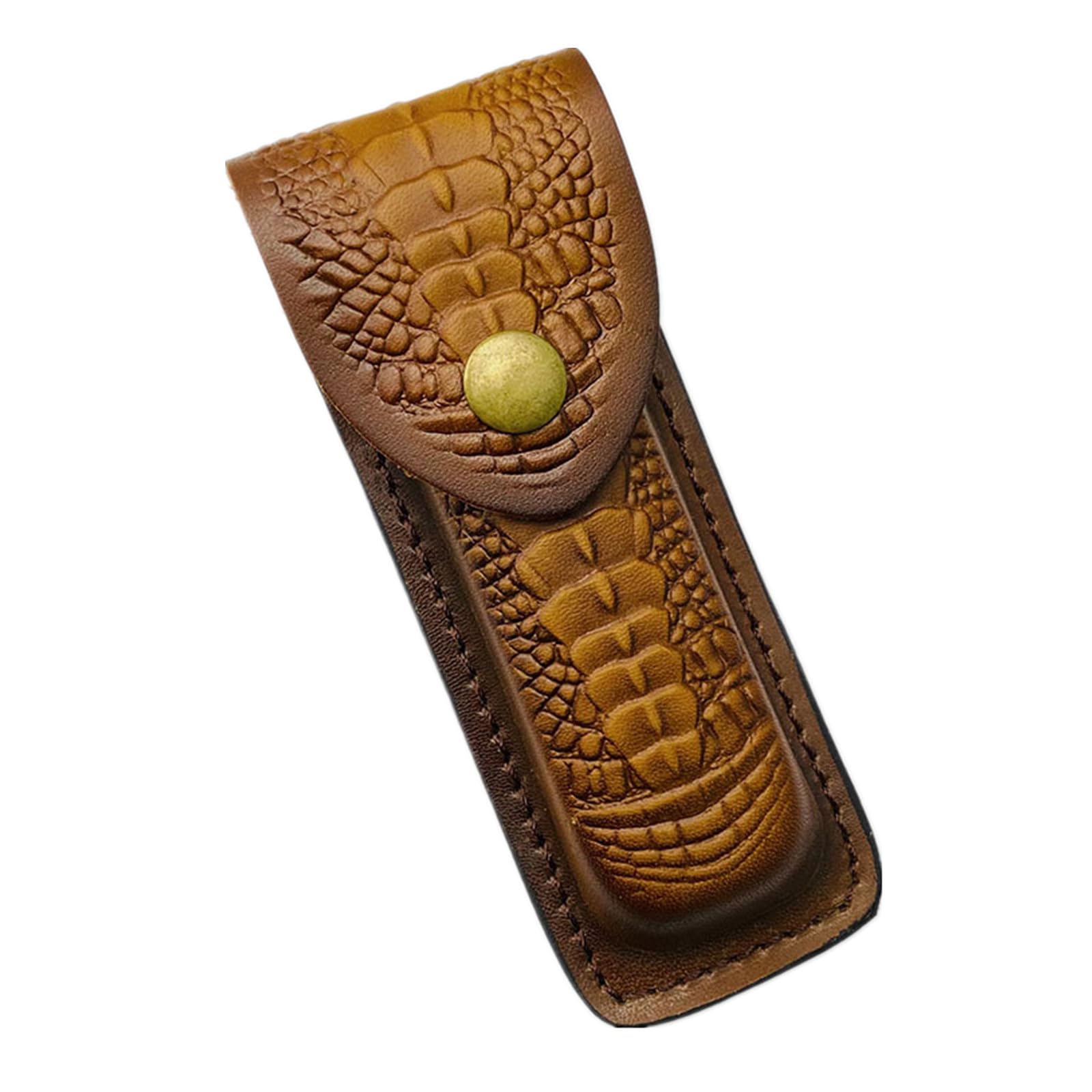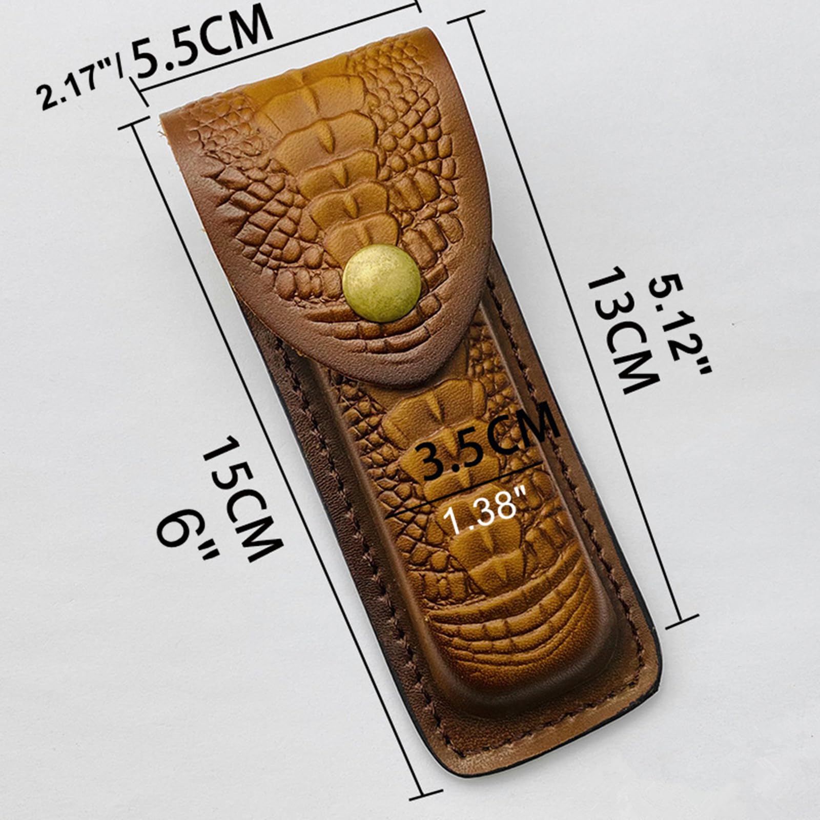 Cow Leather Knife Sheath for Folding Pocket Knife Fit for (LxW) 5.12x1.38" Belt Case Metal Snap Outdoor EDC Hunting Gift
