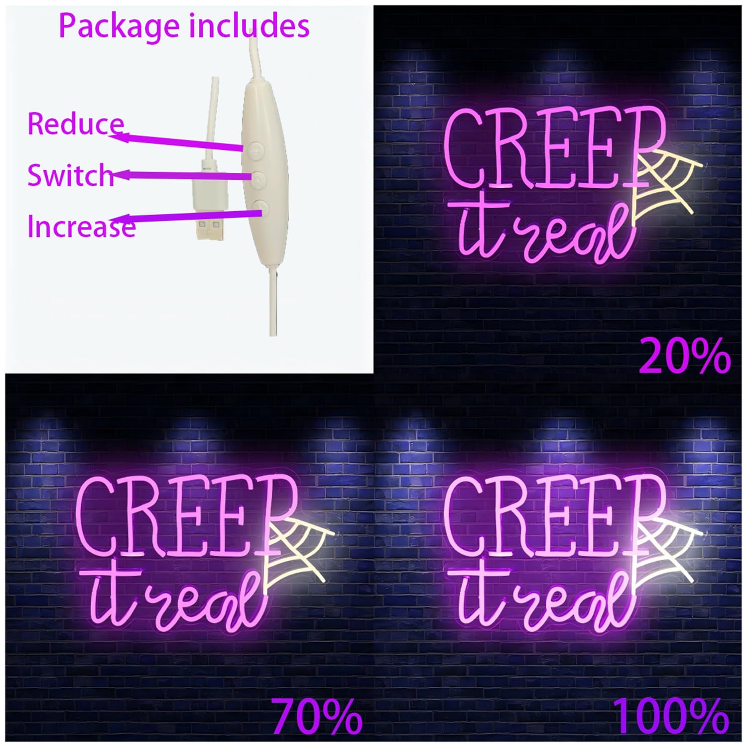 Creep It Real Halloween Neon Sign with Ghost & Spider Web - Spooky Party Decor