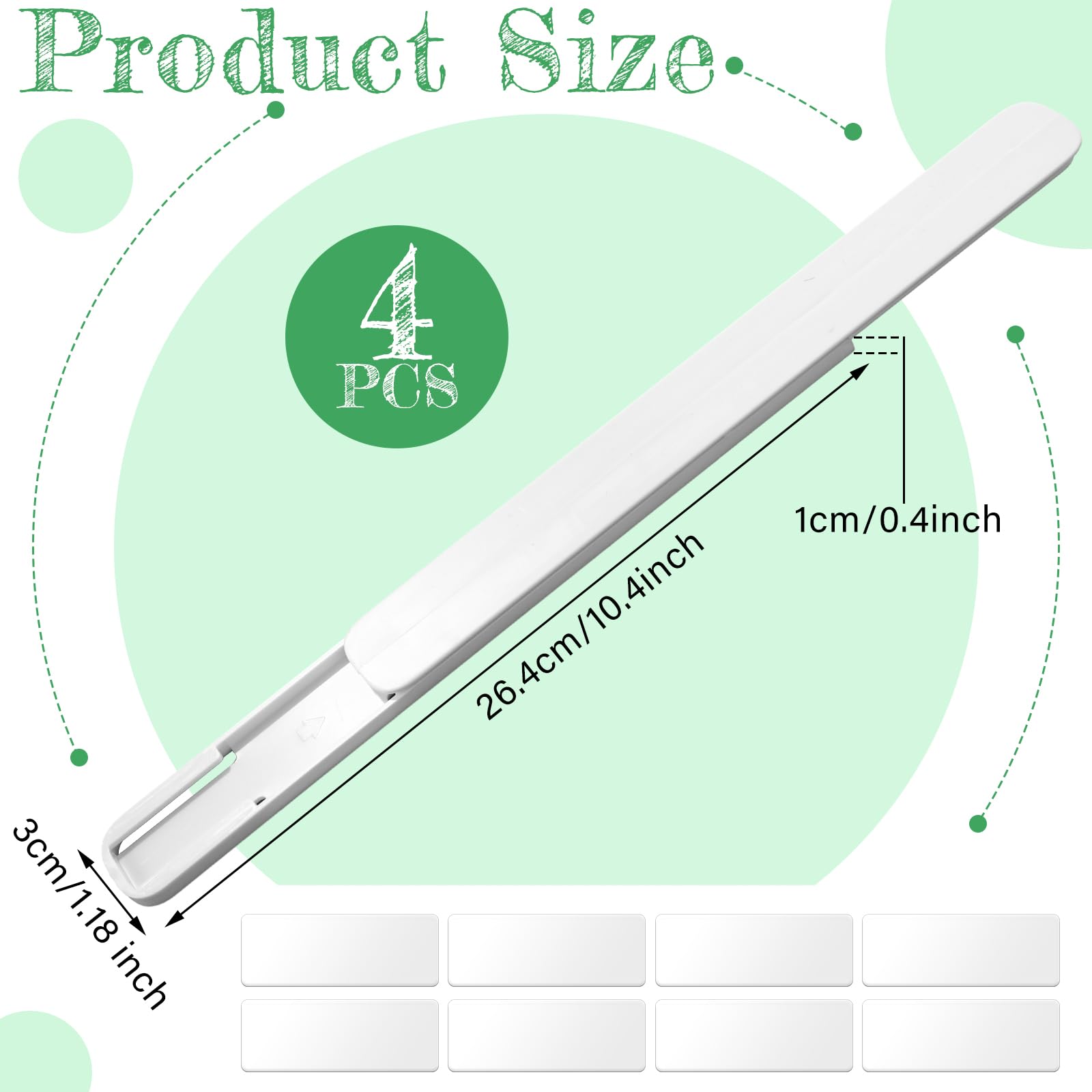 - Convenient to Use: our tool box drawer slide, measuring about 10.39 x 1.18 x 0.39 inches/ 26.4 x 3 x 1 cm in length, width and thickness, compact and will not take up much space, coming with self adhesive tapes, to help mount these white drawer rails with ease; It doesn't need any drilling, making the installation process effortless, ideal for use on many types of cabinets and general storage drawers