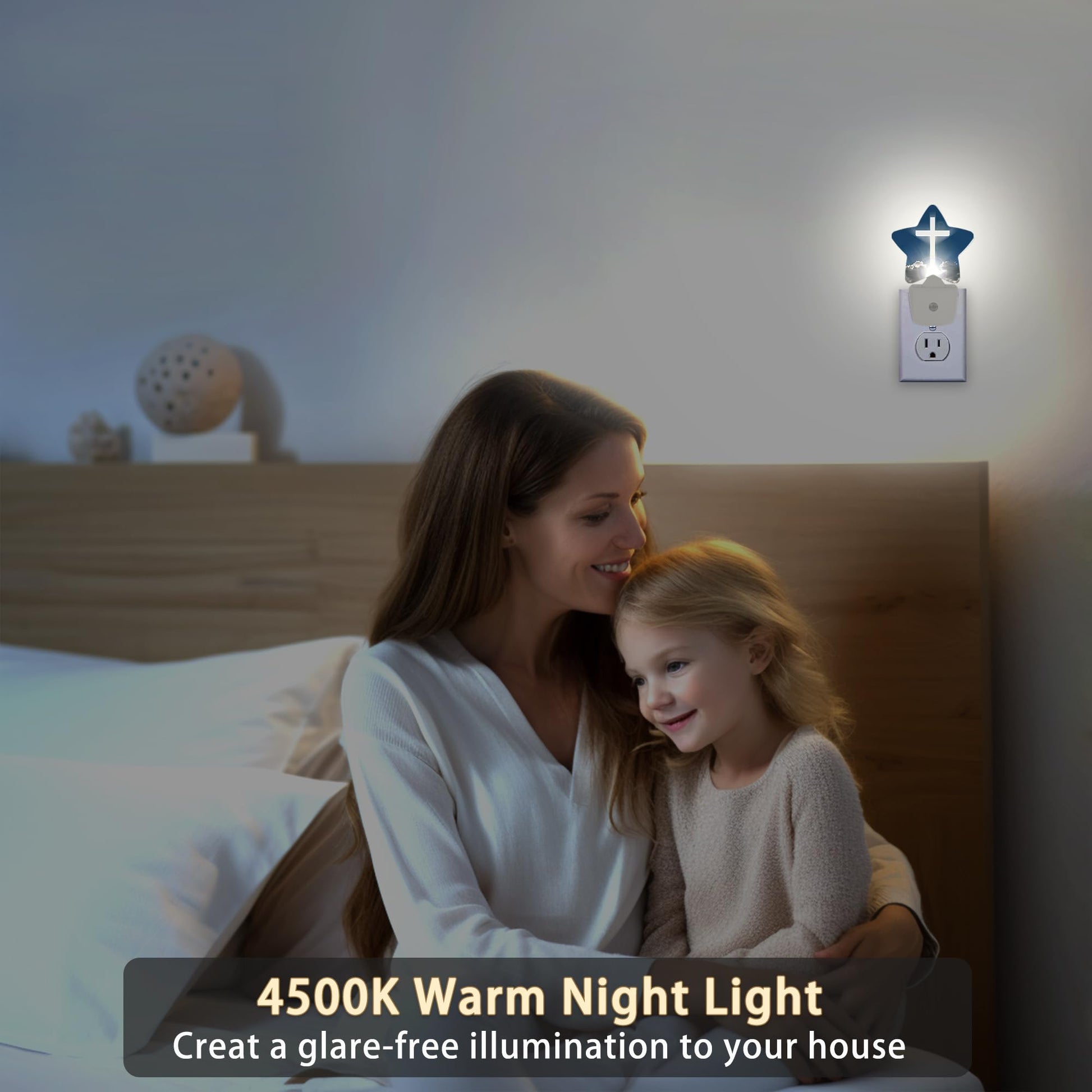 Cross Heaven Plug-in Night Light with Dusk-to-Dawn Sensor for Bedroom,Bathroom and Living Room Sleep Friendly lamp for Women/Girls/Boys Gift,0.5W
