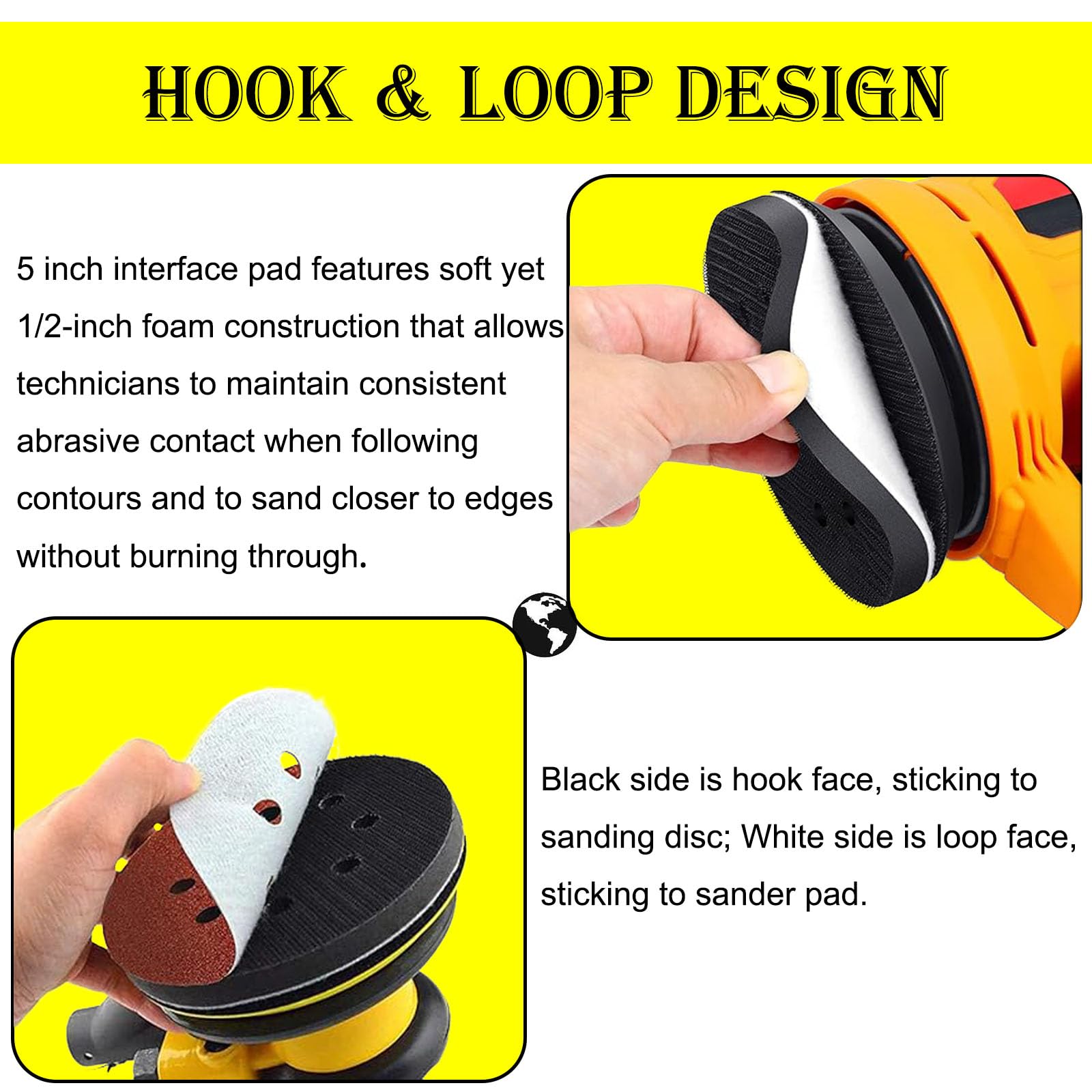 - DURABILITY – Premium waterproof adhesive hook between foam and sanding disc; no worries about 5" interface pad coming apart; suitable for use whether wet or dry sanding