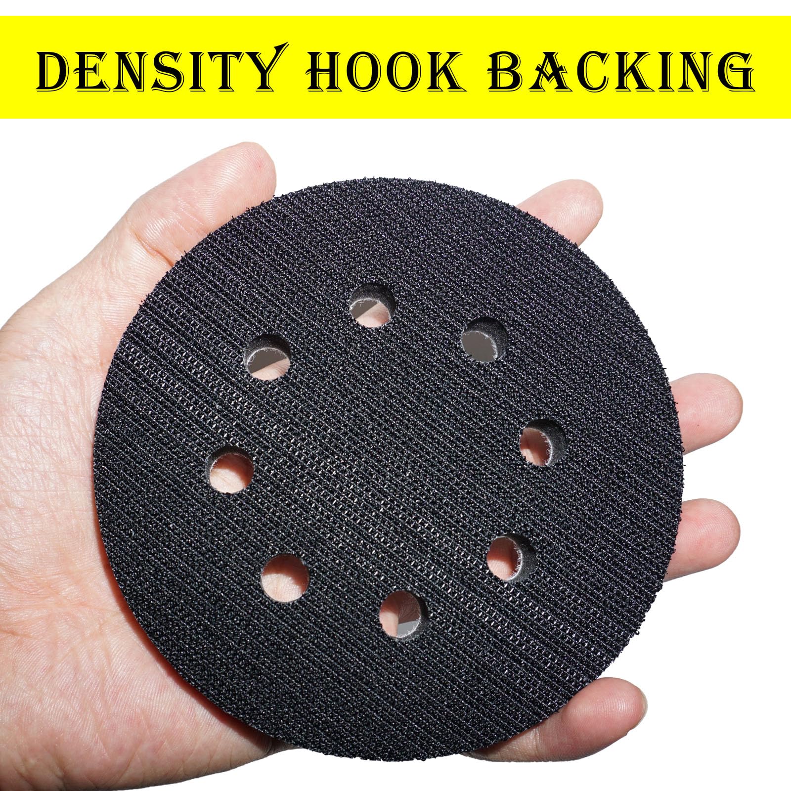 - HOOK & LOOP BACKING PAD – Black side, you'll find a hook face for easy attachment of sanding disc, while the other side boasts a loop face for securing sanding pads in place. This versatile feature allows for convenient replacements and ensures compatibility with a wide range of sanding discs.
