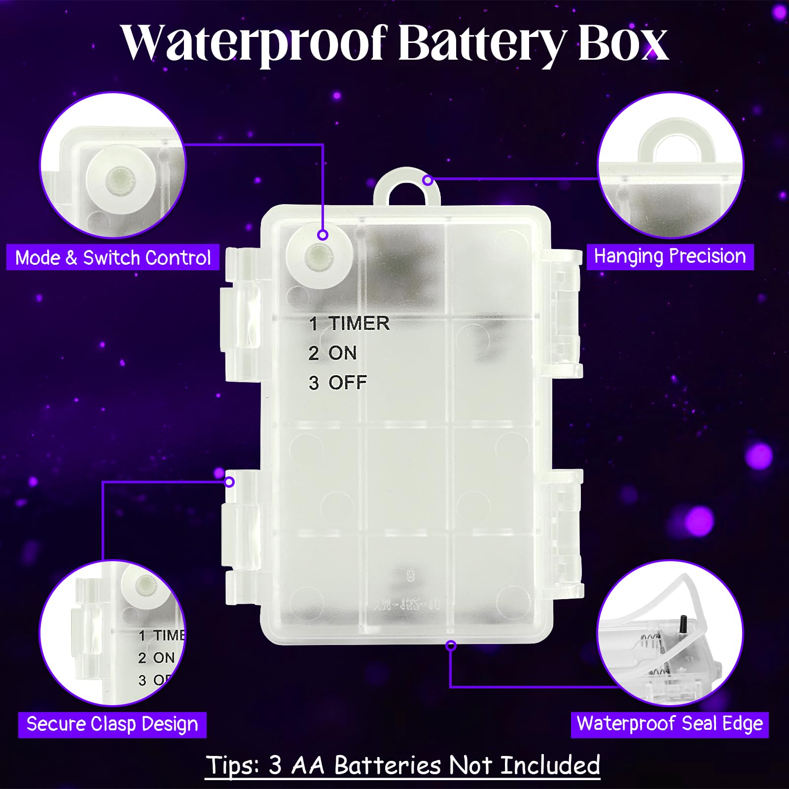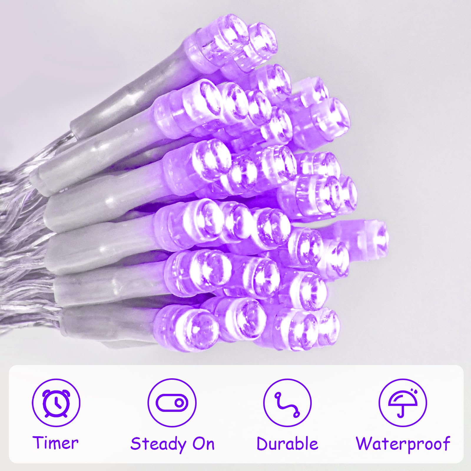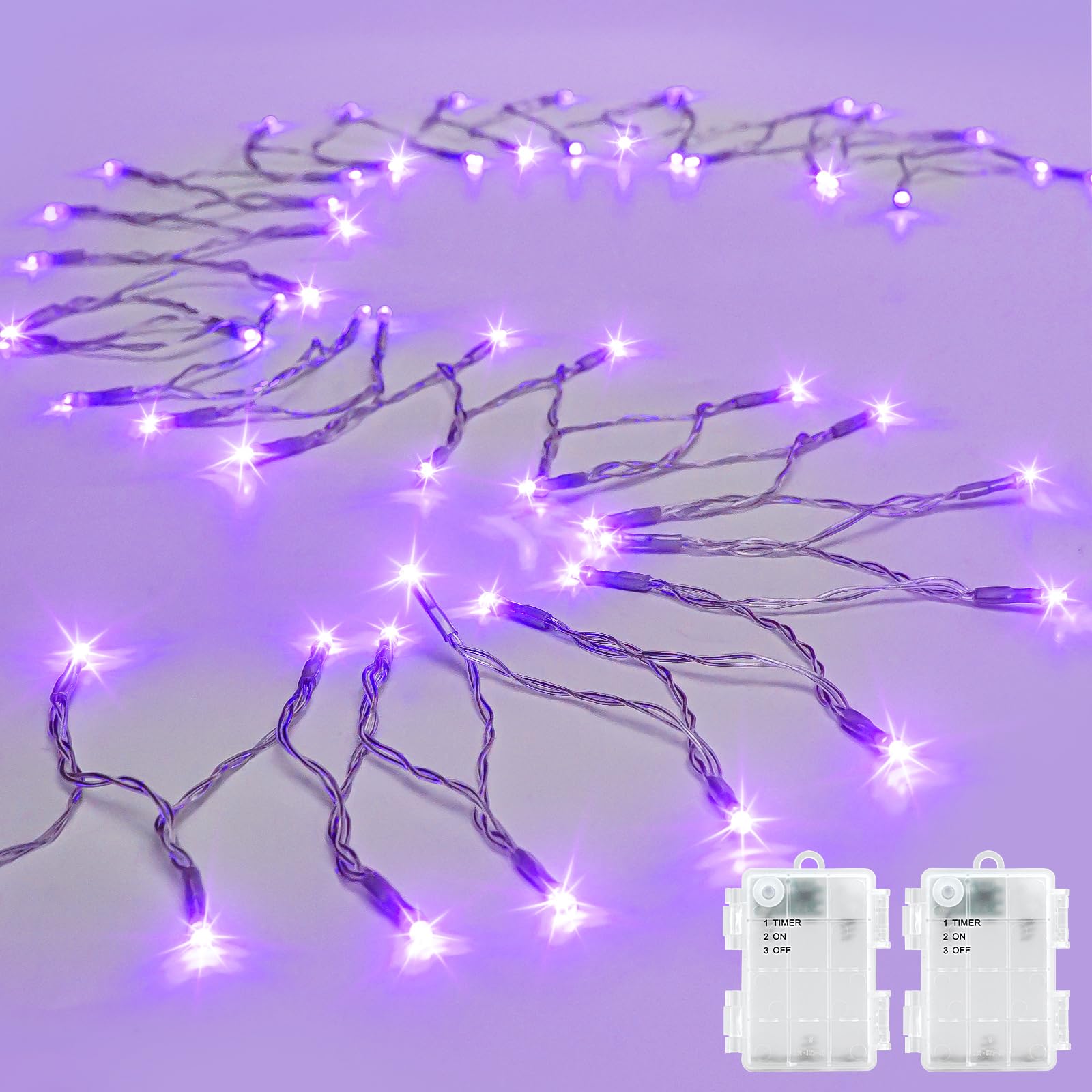 - Mystical Purple Charm ✨: Our purple string lights are one of the most popular Halloween decorations, Illuminate your festive moments with our 3m waterproof purple battery box string lights, emitting a mysterious and enchanting glow that adds a special touch to your Halloween decorations