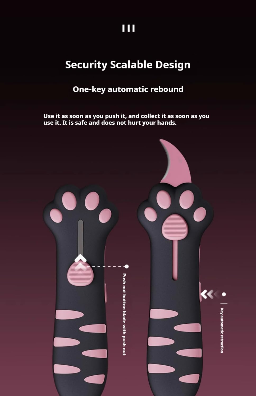 - 【New Cat Paw Box Cutter 】Our Box Cutter Retractable combines cuteness with practicality, making it the perfect tool for all your packing and unpacking needs. This cute cat-shaped knife is not only a paper cutter, but also a carton sealing tape knife, allowing you to easily open packages without any effort