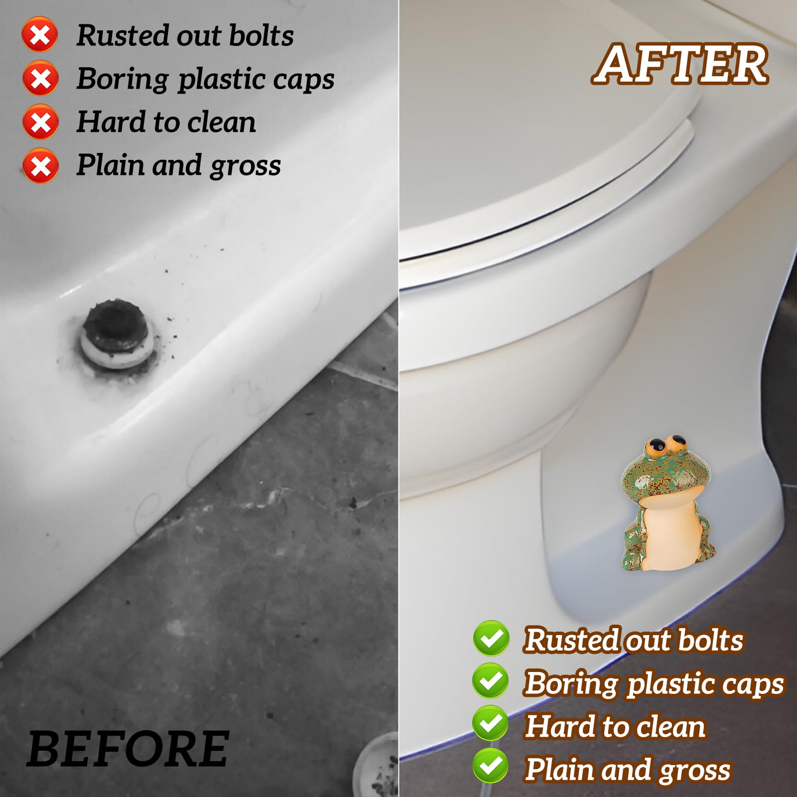 - Adorable: ✓ Frog design transforms toilet screw covers decorative into charming bathroom accessories.
