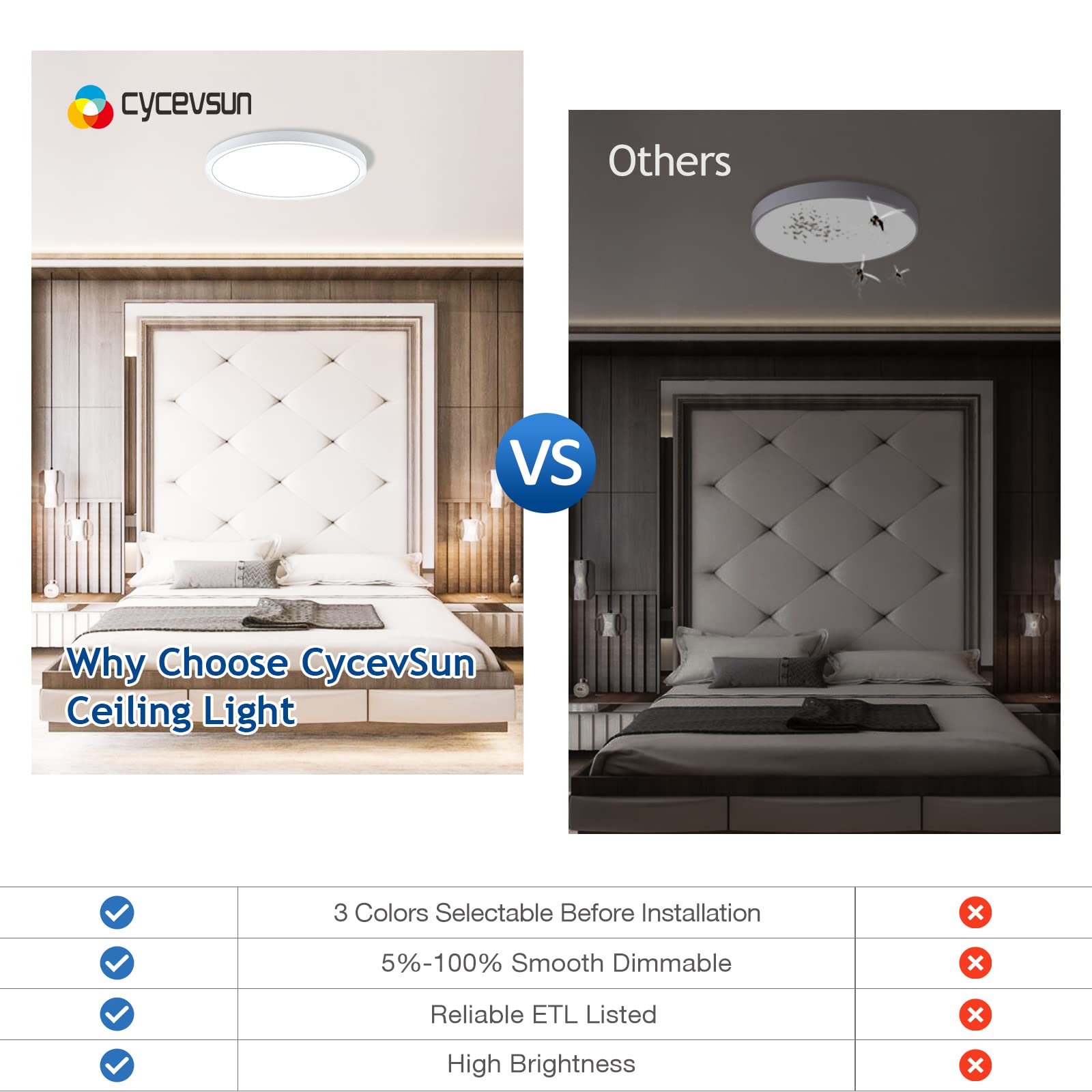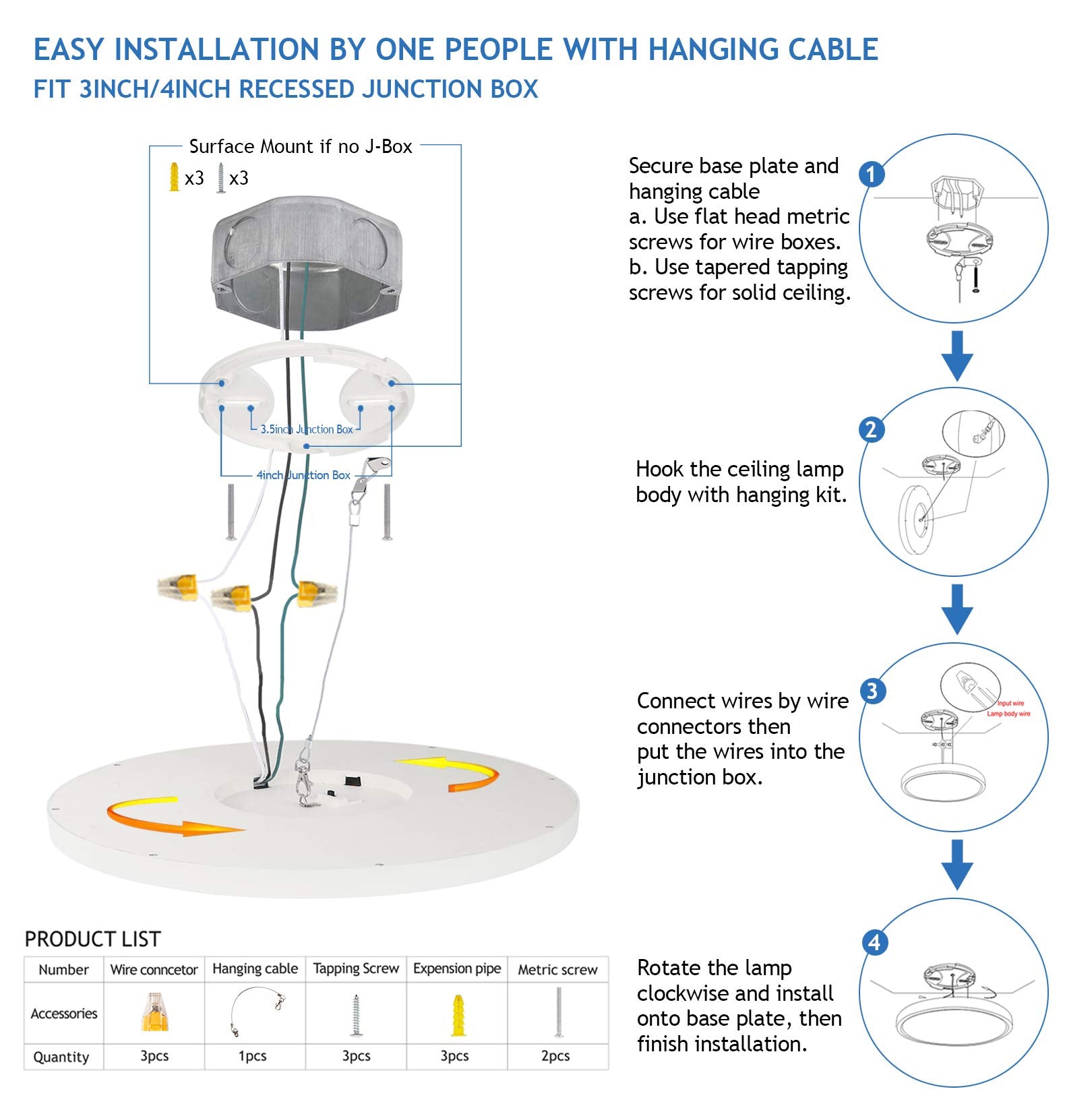 - Color Temperature Selectable: The dimmable flush mount ceiling light has a simple switch on the back to preset your preferred light color temperature: warm white 3000K, neutral white 4000K, or daylight 5000K