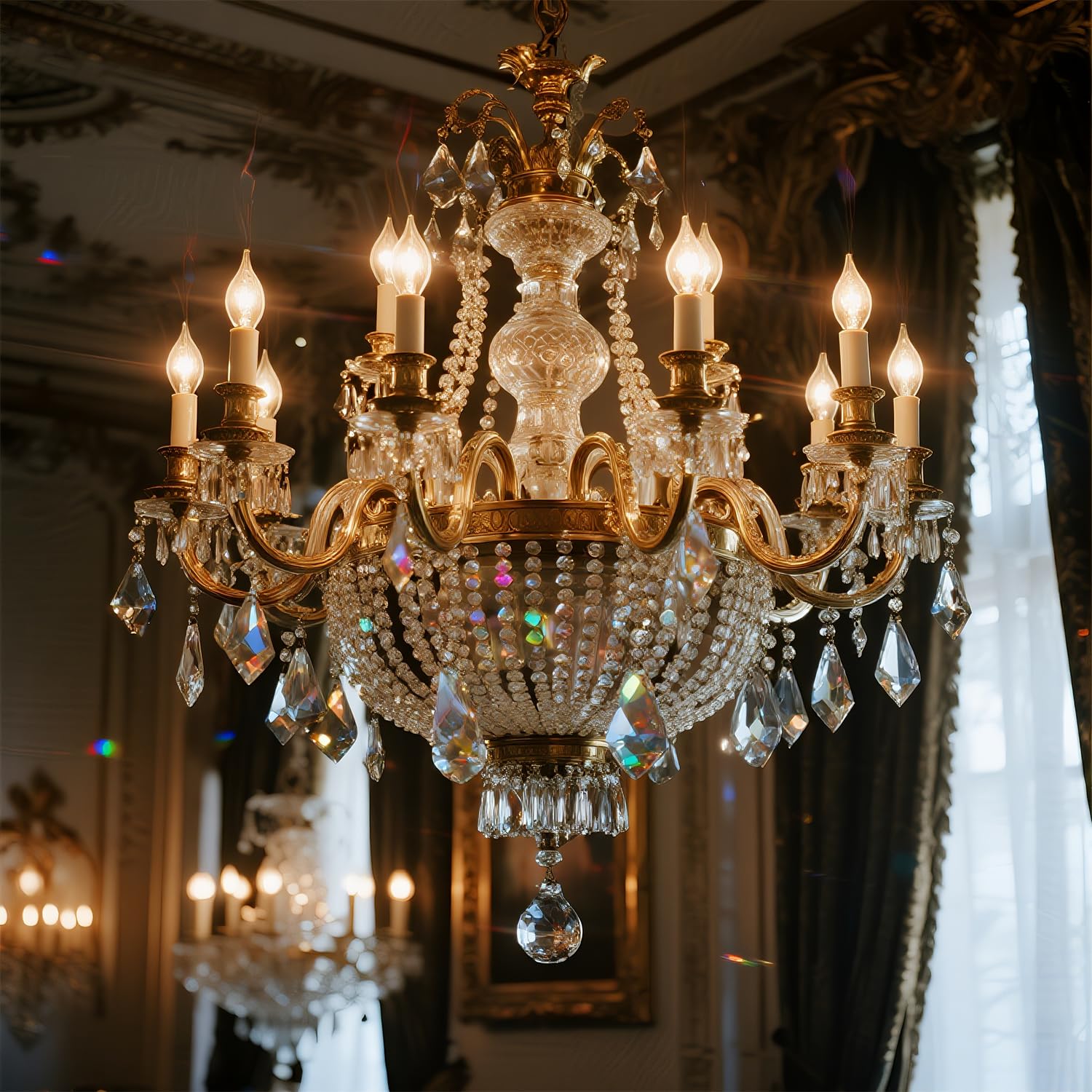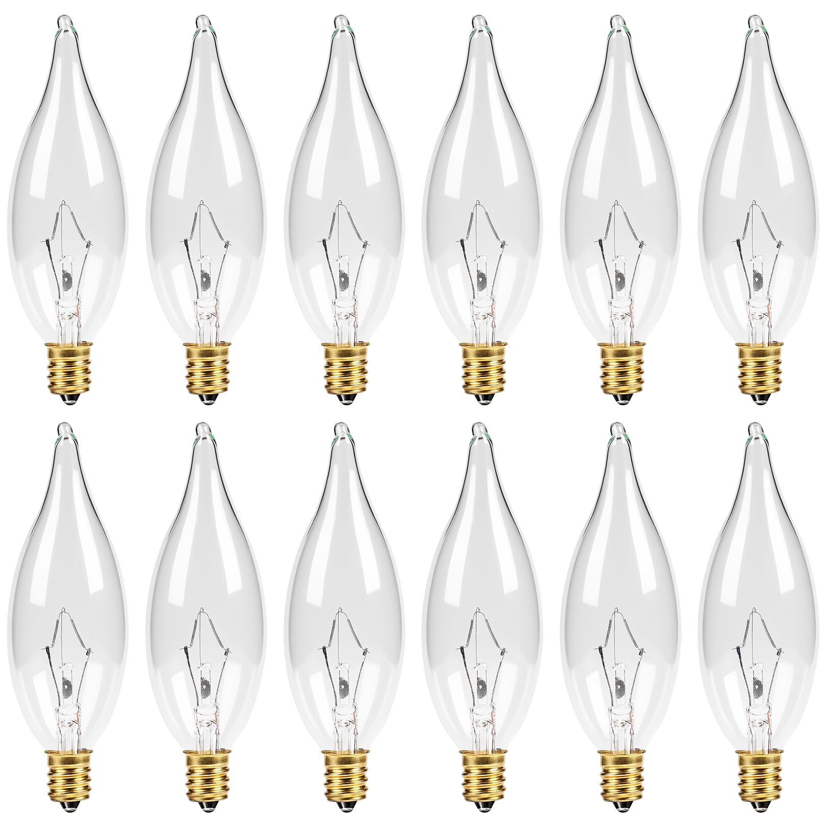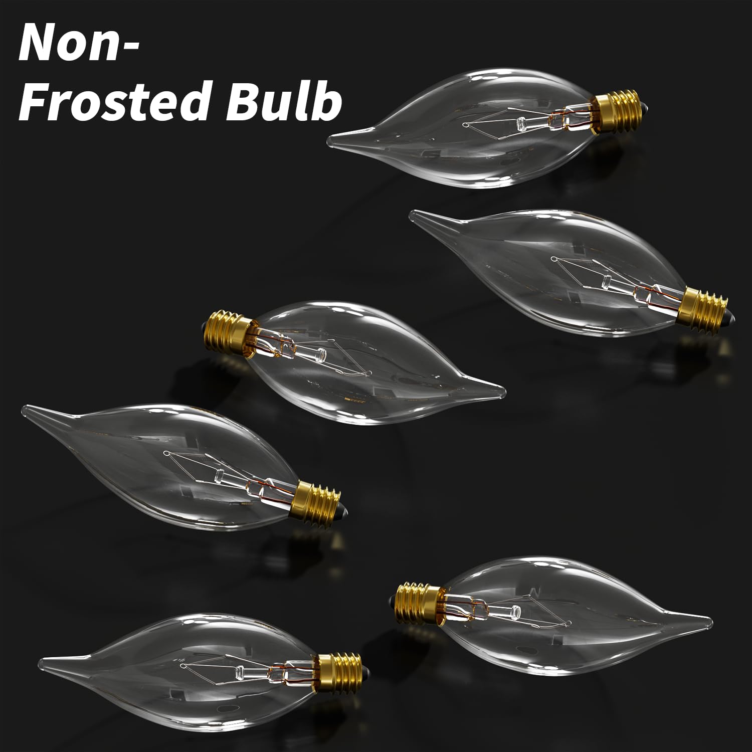 - 【Elegant Candle Design】 - Solid brass gold E12 base ensures superior conductivity, durability & safety. Clear CA10 candle bulb adds vintage charm to chandeliers, fans, sconces.