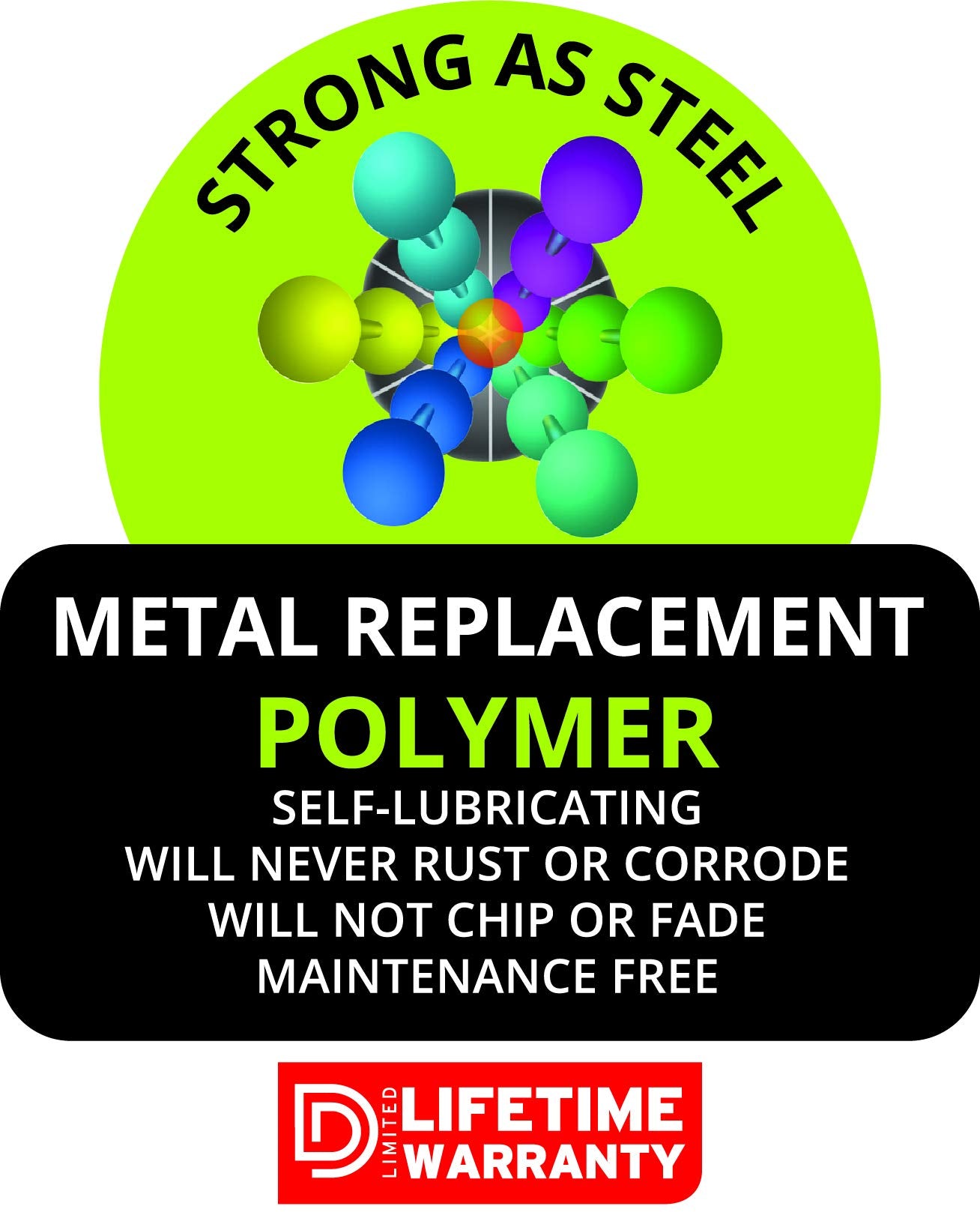 - INDUSTRIAL STRENGTH POLYMER, NOT PLASTIC - Following extensive research and development over 30 years, our polymer technology has evolved to the point where reinforced engineering polymers are increasingly being used in high-stress applications in place of traditional metal components. Our “metal replacement” polymer will not rust, bind, sag or stain and is self-lubricating. D&D polymer gate hardware is durable and built to last a lifetime.