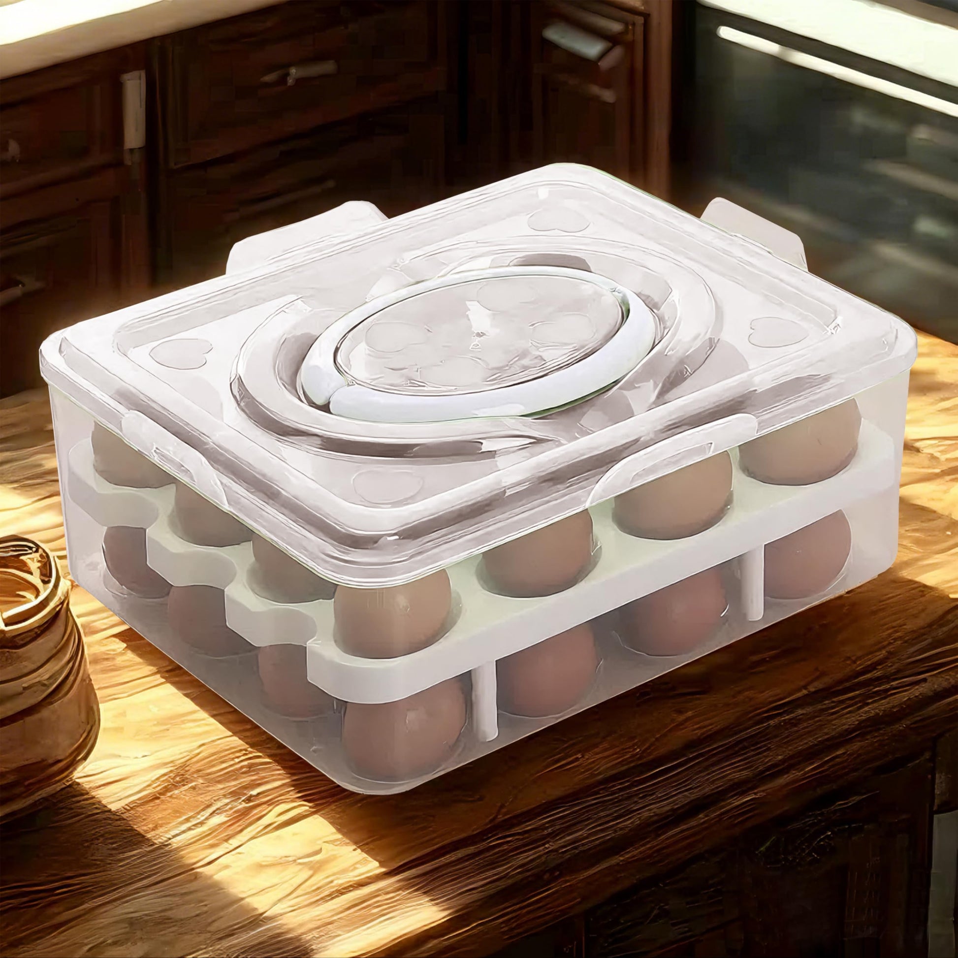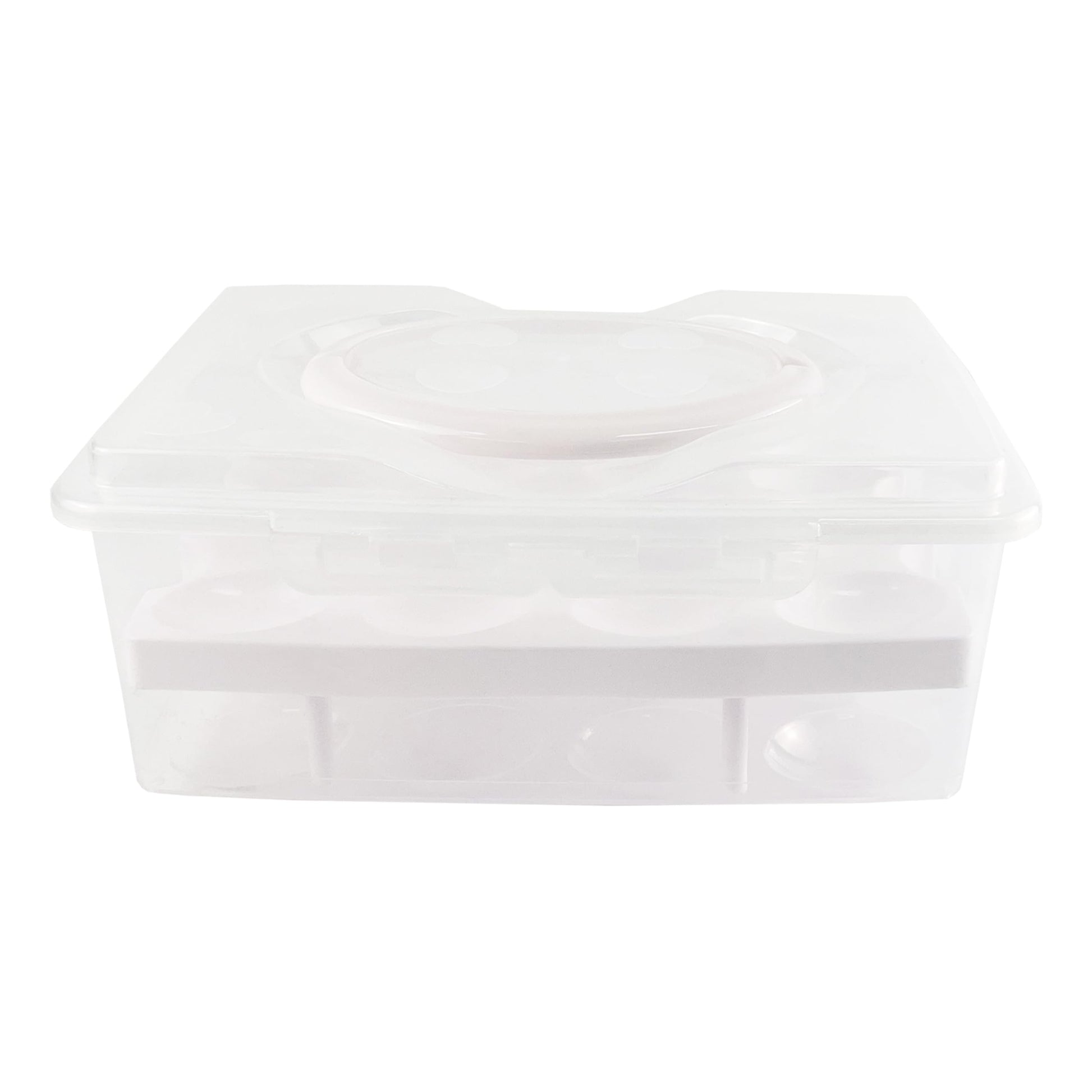 Daixers Ortable Large Capacity Double-layers Egg Storage Container Holds 24 Eggs Shatter-proof Non-slip Eggs Holder with Handle (White)
