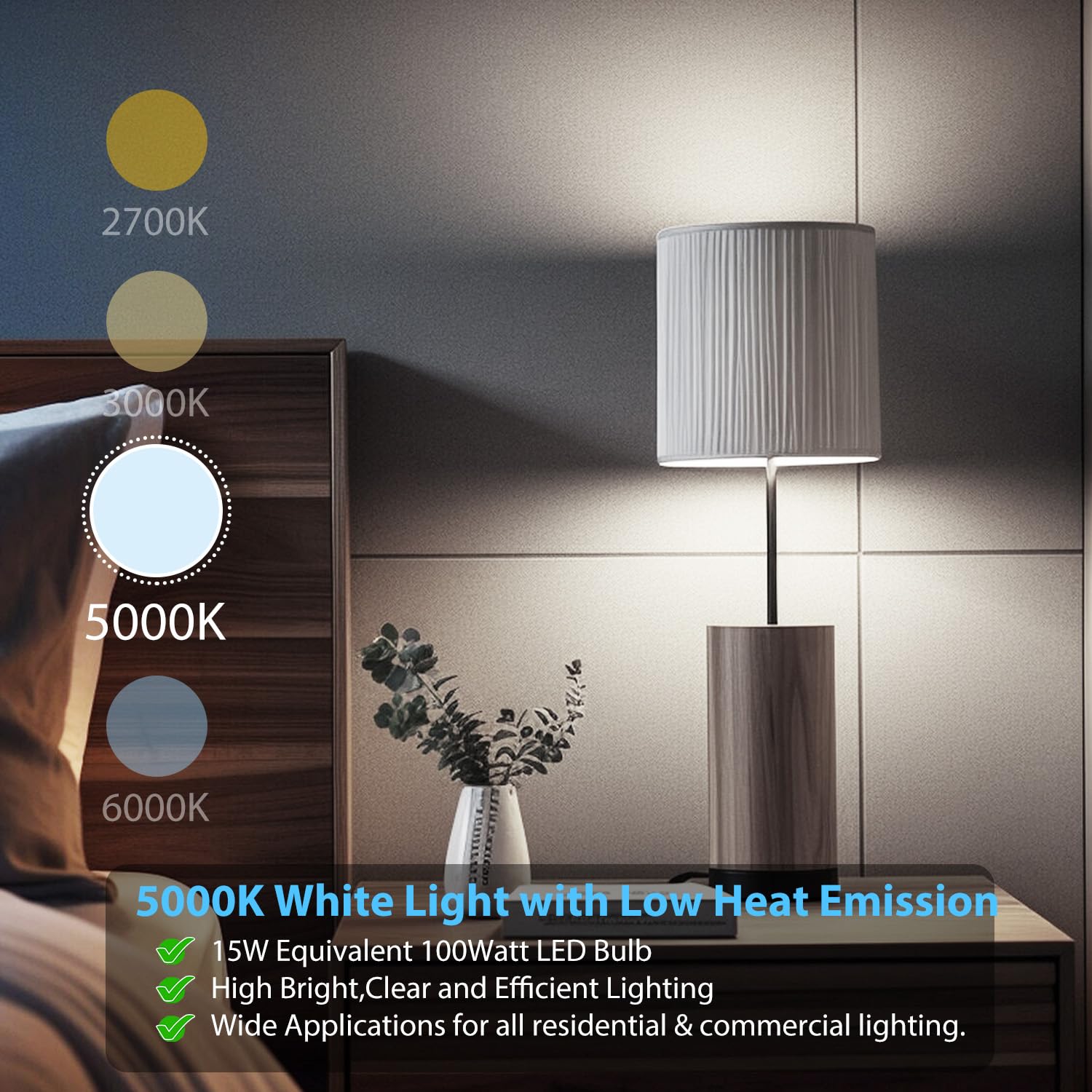 - Energy Saving: Replacing a A19 100-watt incandescent bulb with a 15-watt daylight LED reduces energy consumption by up to 90%, lowering annual electricity costs to approximately $1.81. This efficient lighting solution delivers bright, comfortable illumination while supporting visual well-being.