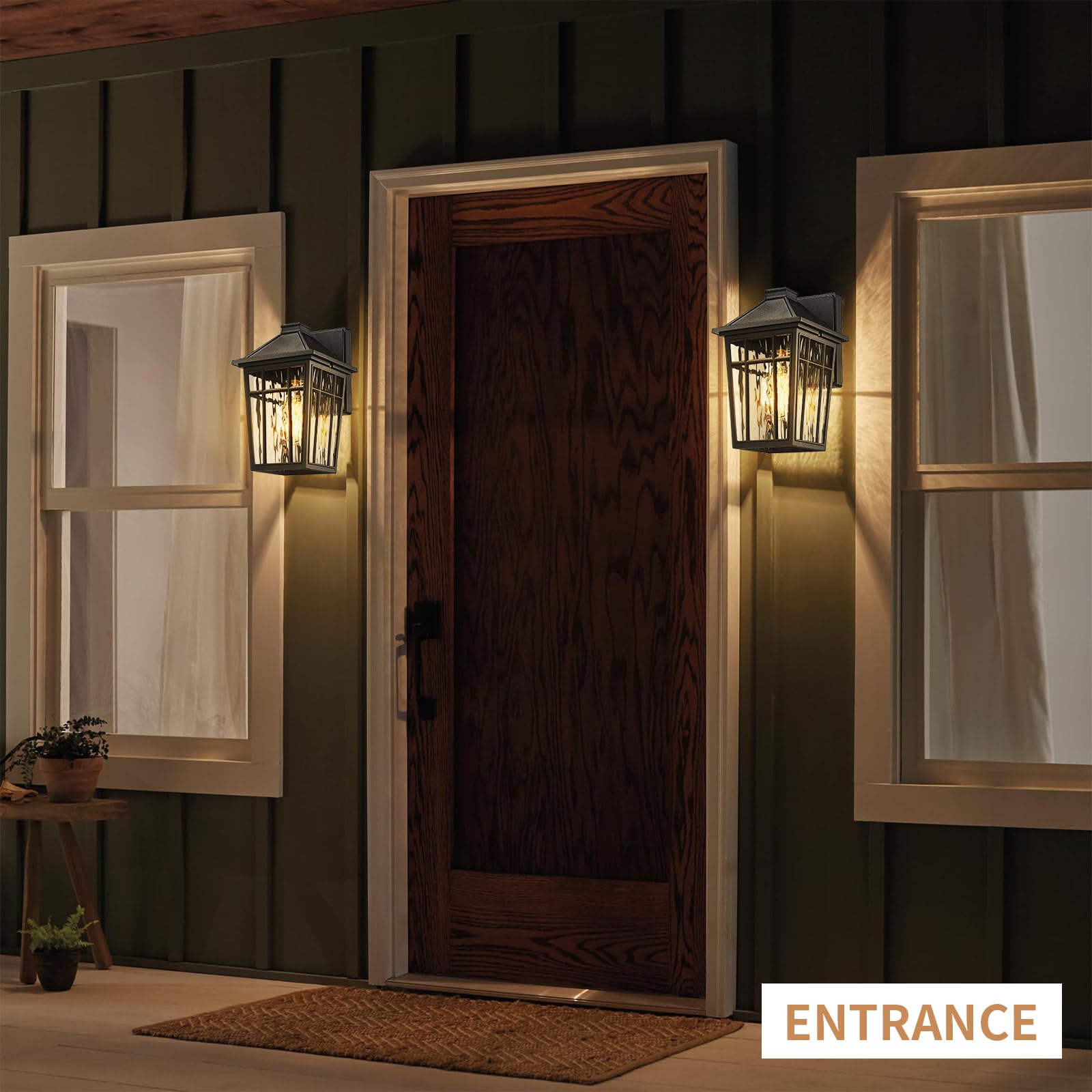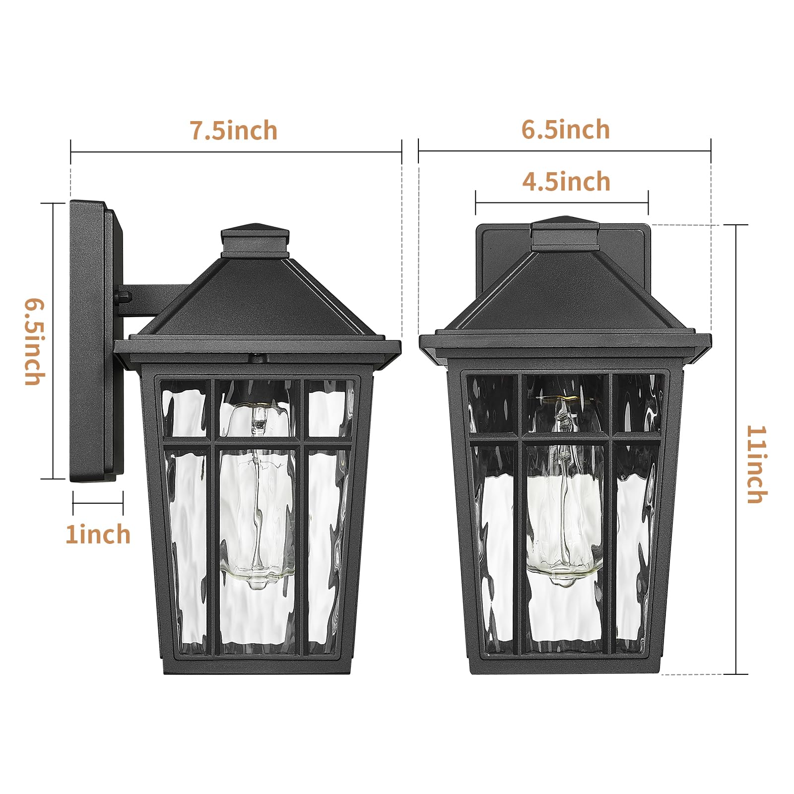 - Elegant Design Wall Light-Wall sconce with water ripple glass , making charming Iighting effects ,ideal for various outdoor spaces, these patio wall lights beautifully retro styles. Perfect for frontdoor,porch, doorway, garage, backyard, hallway, patio, foyer, and entryway.