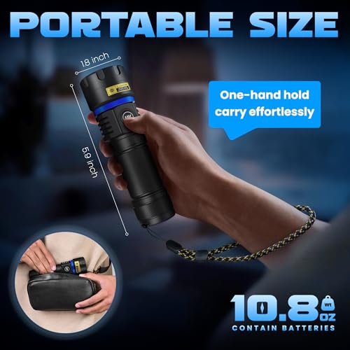 - [Handheld Portable UV Lights Woods Lamp]: With USB output, supports emergency power supply for your electronic devices at any time, avoiding the inconvenience caused by sudden power failure. Weighs 10.8 OZ, measures of 5.9*1.8 IN, easy to hold and operate with one hand. IPX65 waterproof design, made of thickened rubber seals for better waterproof performance. High-quality aluminum alloy case, greatly enhance heat dissipation performance and make the uv flashlights more reliable.