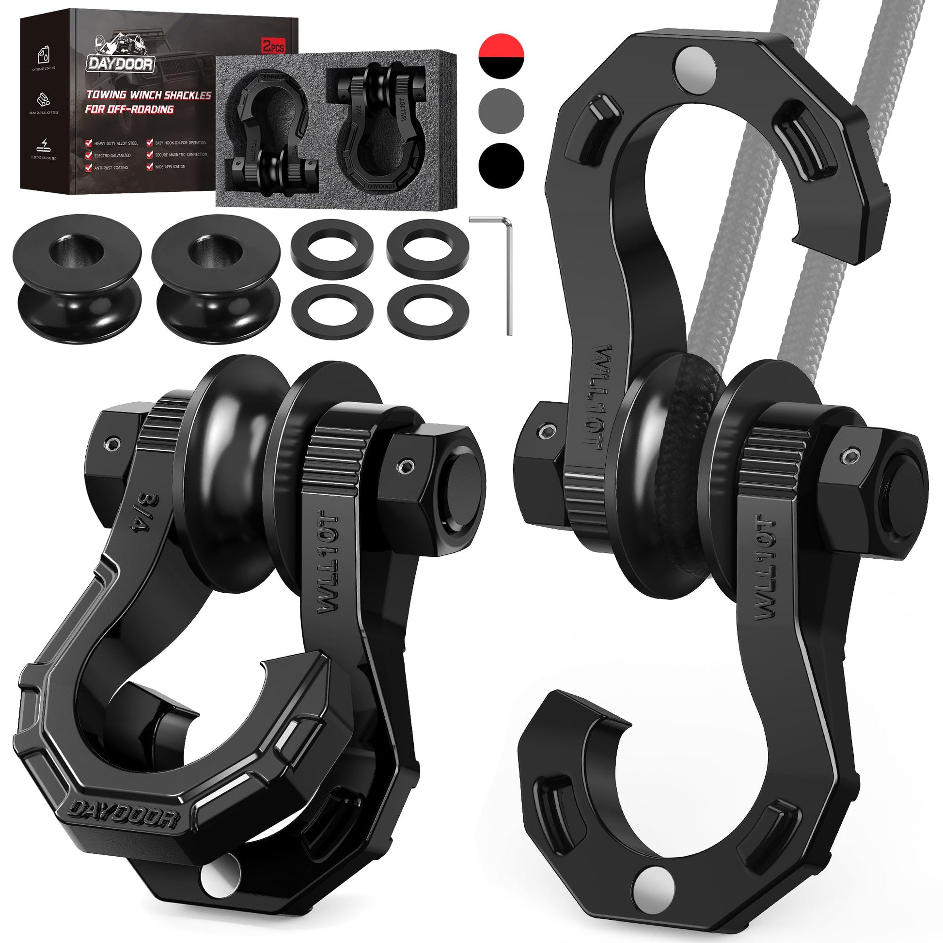 - Quick and Easy Installation:With DAYDOOR D ring shackle snatch block,you can easily install the tow strap on the shackle.The design allows you to hook a chain, winch rope, or tow strap without taking the shackles apart once installed. The 3/4” shackle D rings, combined with the 7/8 pin, ensure a secure and reliable connection. In rescue work, it is very important to avoid wasting time due to cumbersome installation. Compared with basic snatch blocks that require additional purchase of connectors like shackles or soft shackles to attach ropes. DAYDOOR D Ring Shackles with Towing Pulley Block eliminates the need for additional accessories during use