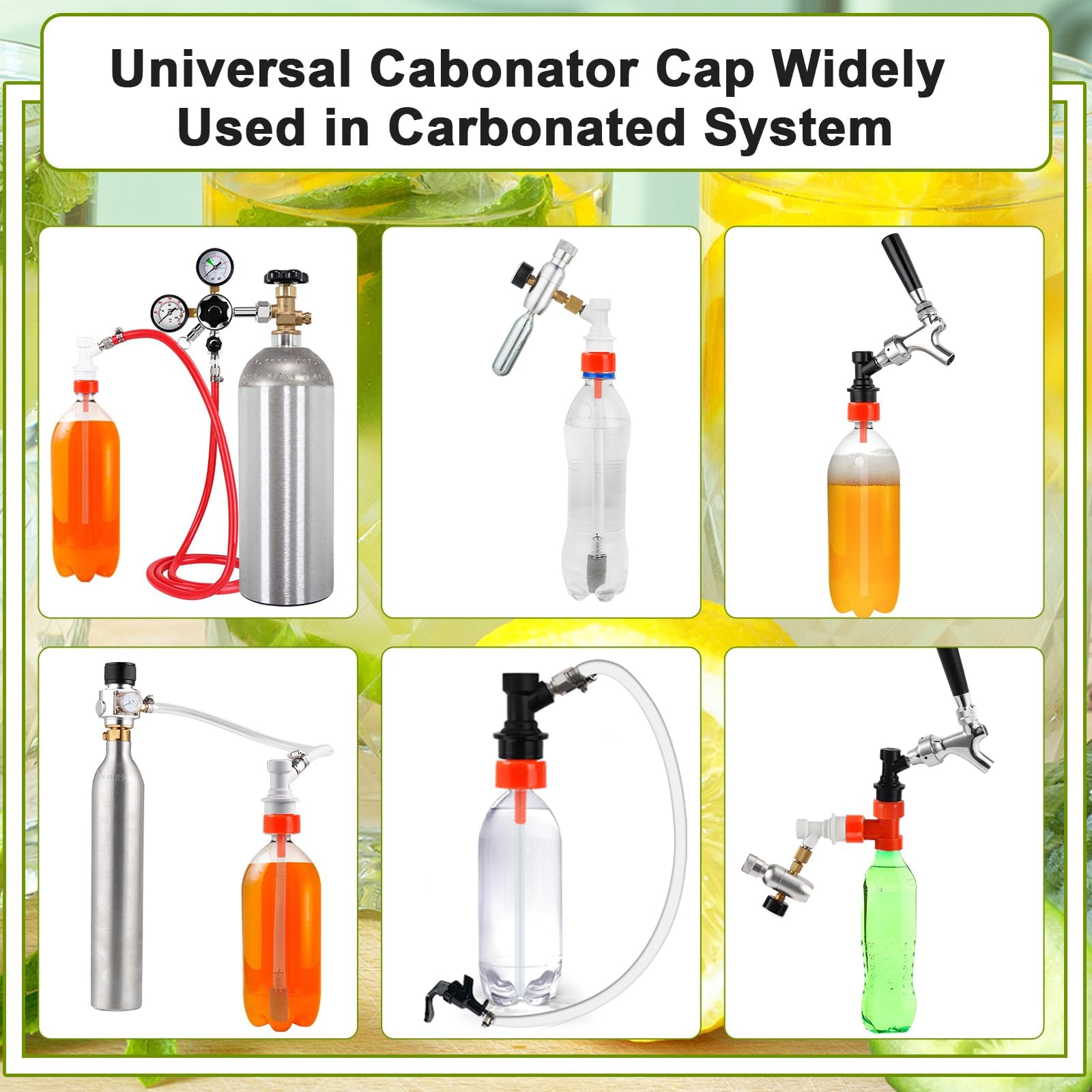 - 【Tight Sealing O-Rings & No Leakage】4 type sealing o-rings ( keg post o-ring, keg post poppet o-ring,bottle flat washer, 5/16 barb fitting o-ring) on each plastic carbonator cap are made of food safe rubber, wear-resistant and healthy, efficiently preventing leakage. The o-ring for 5/16'' barb fitting is screwed inside getting well protected and it will stay in on its own when unscrewing off bottle filling cap. Extra 9 sealing o-rings for replacement.