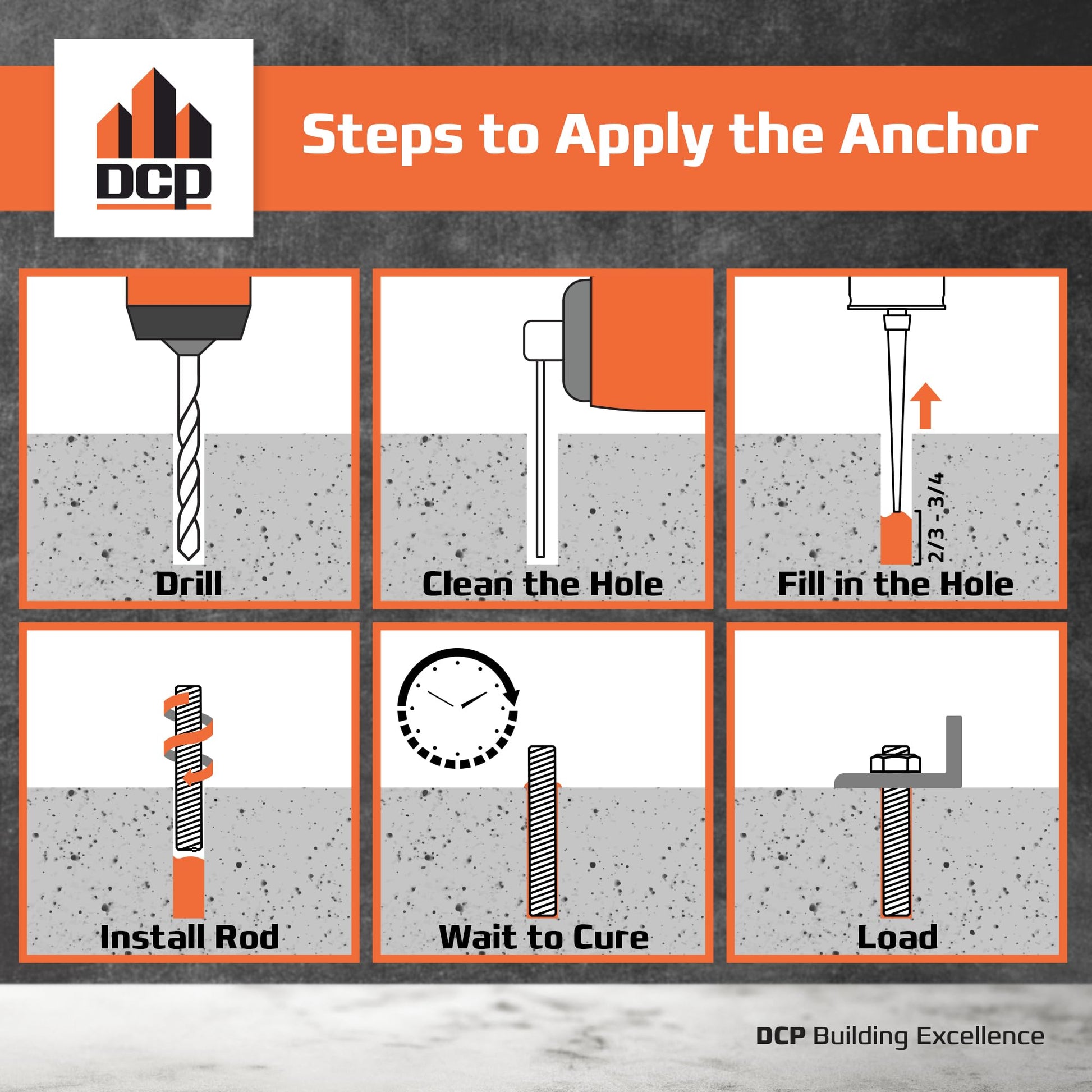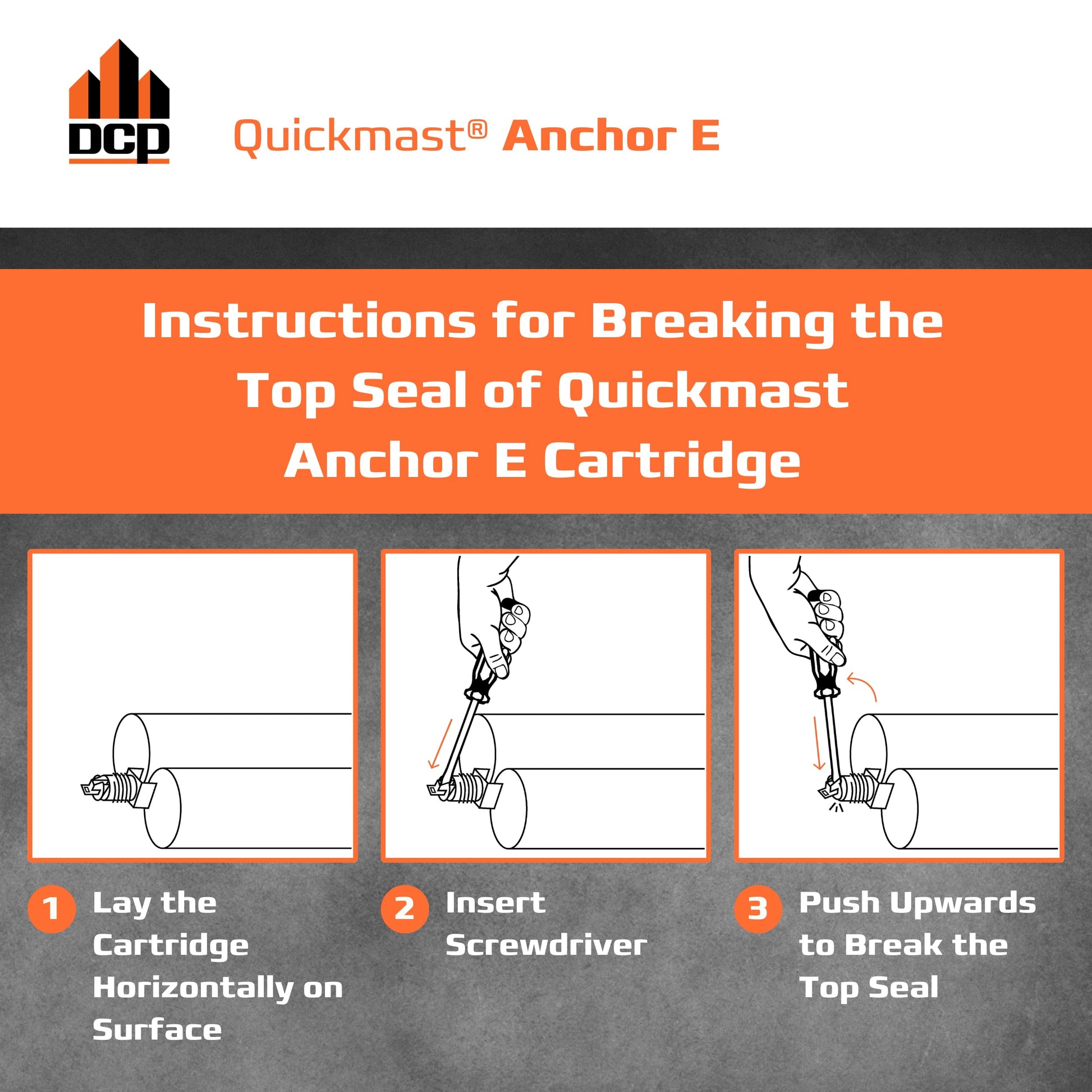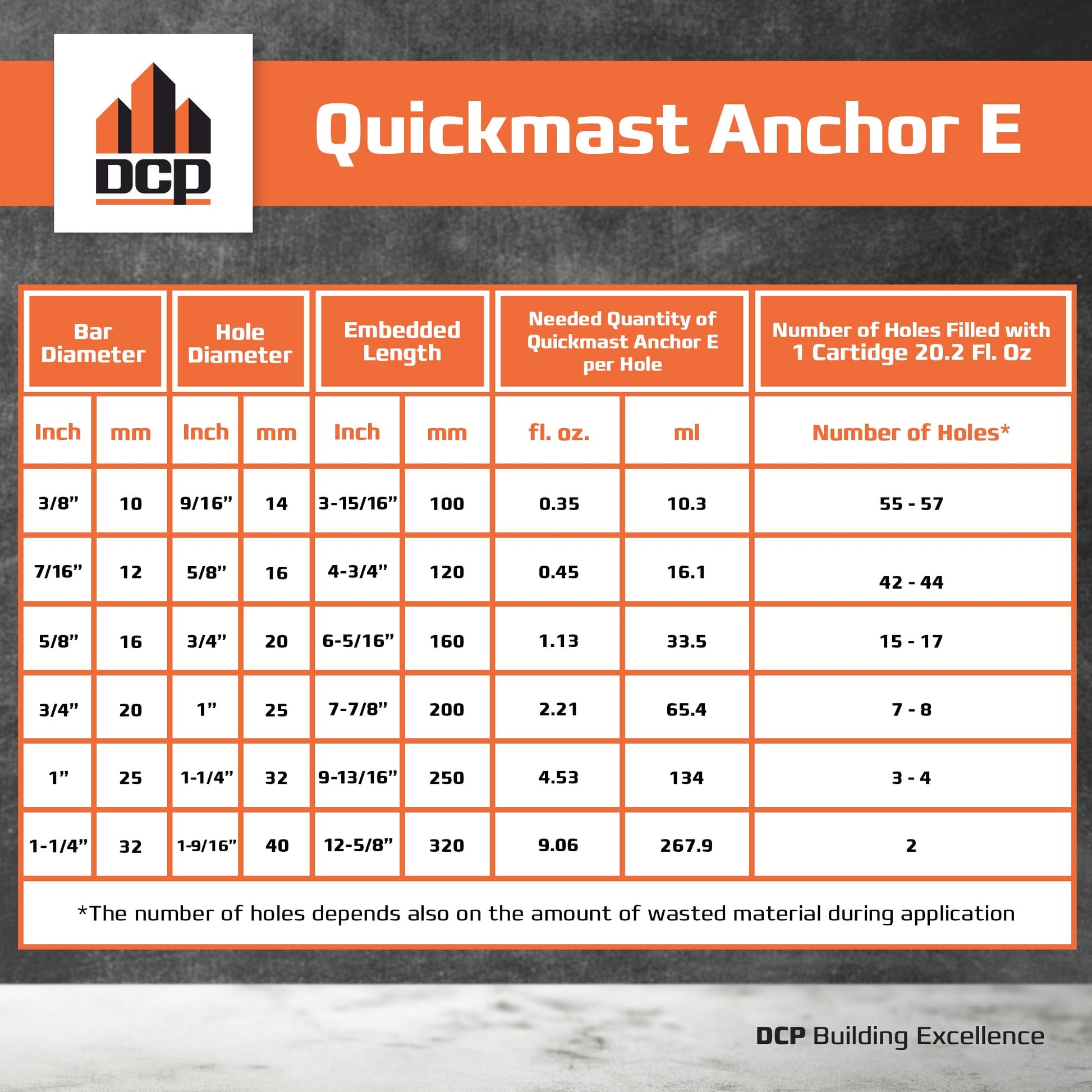 - VERSATILE ANCHORING STRENGTH: Suitable for a broad range of applications, DCP Quickmast Anchor E is a pure epoxy system that securely anchors everything from light fixtures to structural supports in concrete.