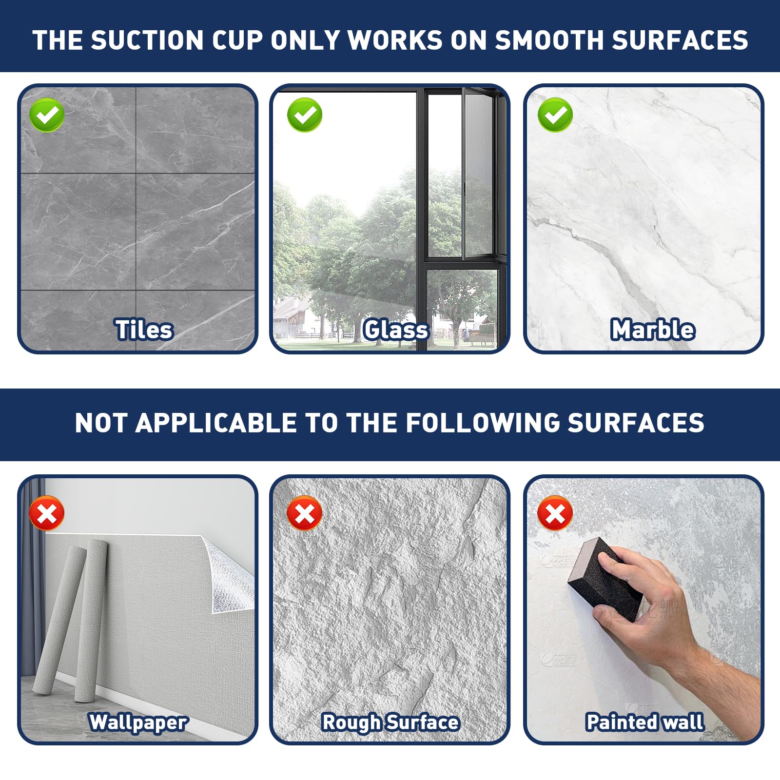 - ★【Applicable Surfaces】The shower towel hook only works on dry and smooth surface,such as Glass, Mirrors, Glossy porcelain tiles,Acrylic,Plastic,Smooth stainless steel, Quartz,Laminate,and other smooth and non-porous surfaces.Towel hooks for bathrooms cannot be install on rough surface or cement lime walls,wallpaper,non-painted wood,mosaic