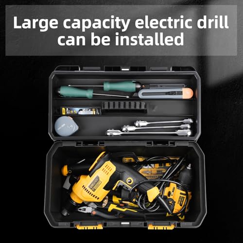 - Detailed Design: non-slip handle, provide a better gripping experience, reduce the toolbox organizer from the hands of the accidental fall. Double plastic locks to enhance the stability of the waterproof tool box and ensure the safety of the tools inside. The tool case is equipped with an extra eyelet for padlock, you can equip your own lock, easy to protect your valuable tools
