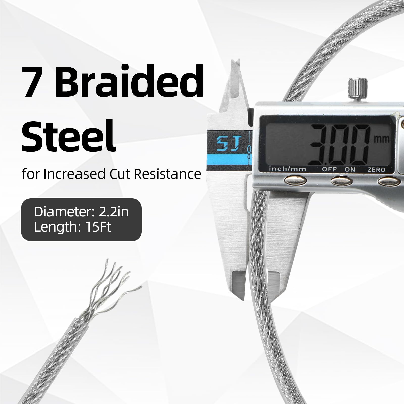DELSWIN Security Steel Cable with Loops - 3mm (1/8 inch) Thick 15FT Heavy Duty Safety Wire Bike Lock Cable Vinyl Coated Braided Cable for Luggage,Ropes of Metal