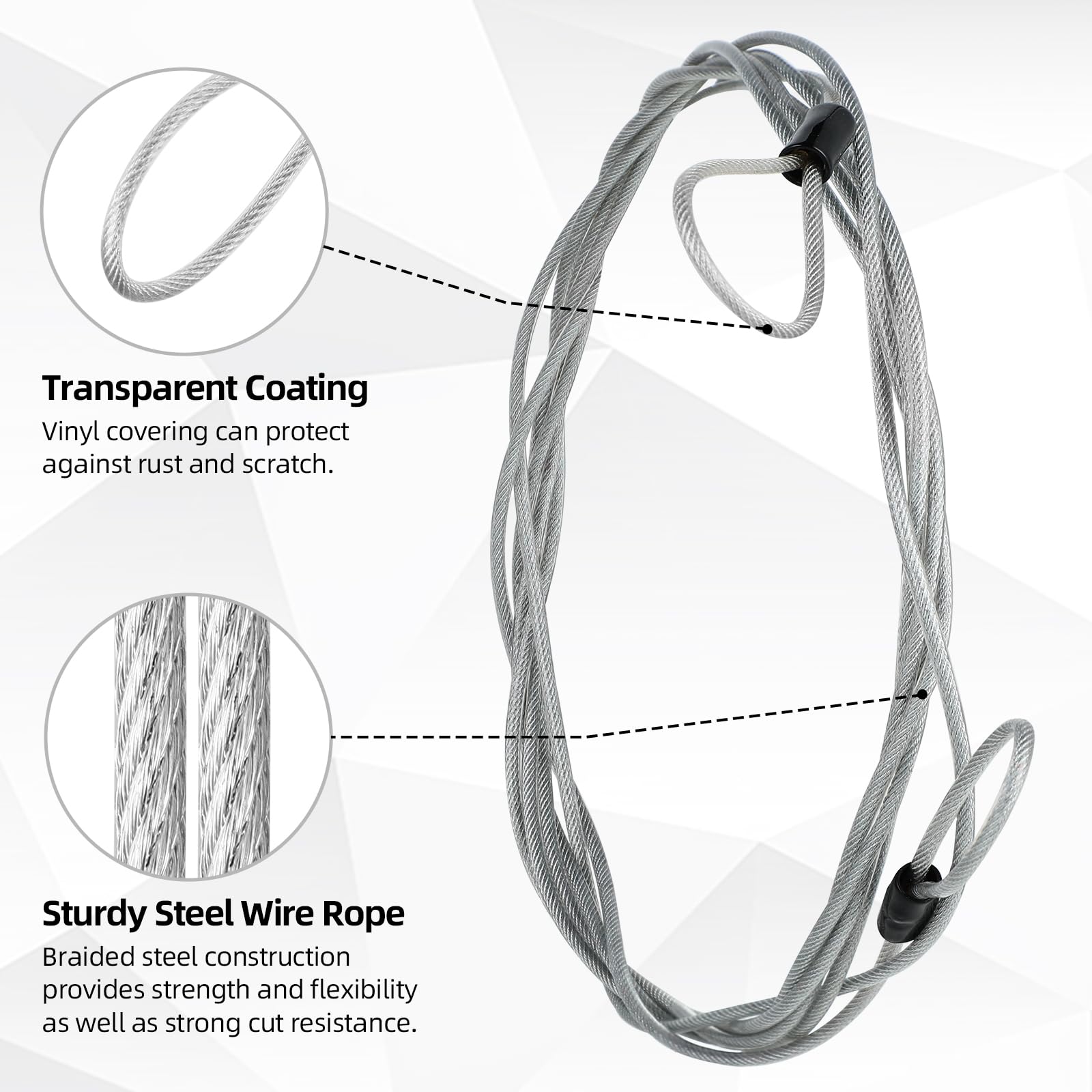 - Protective Coating - Bike steel cable is 1/8 inch diameter and is covered in a weather-resistant PVC material to remain useful in all types of weather, can effectively avoid rust and scratching valuables.