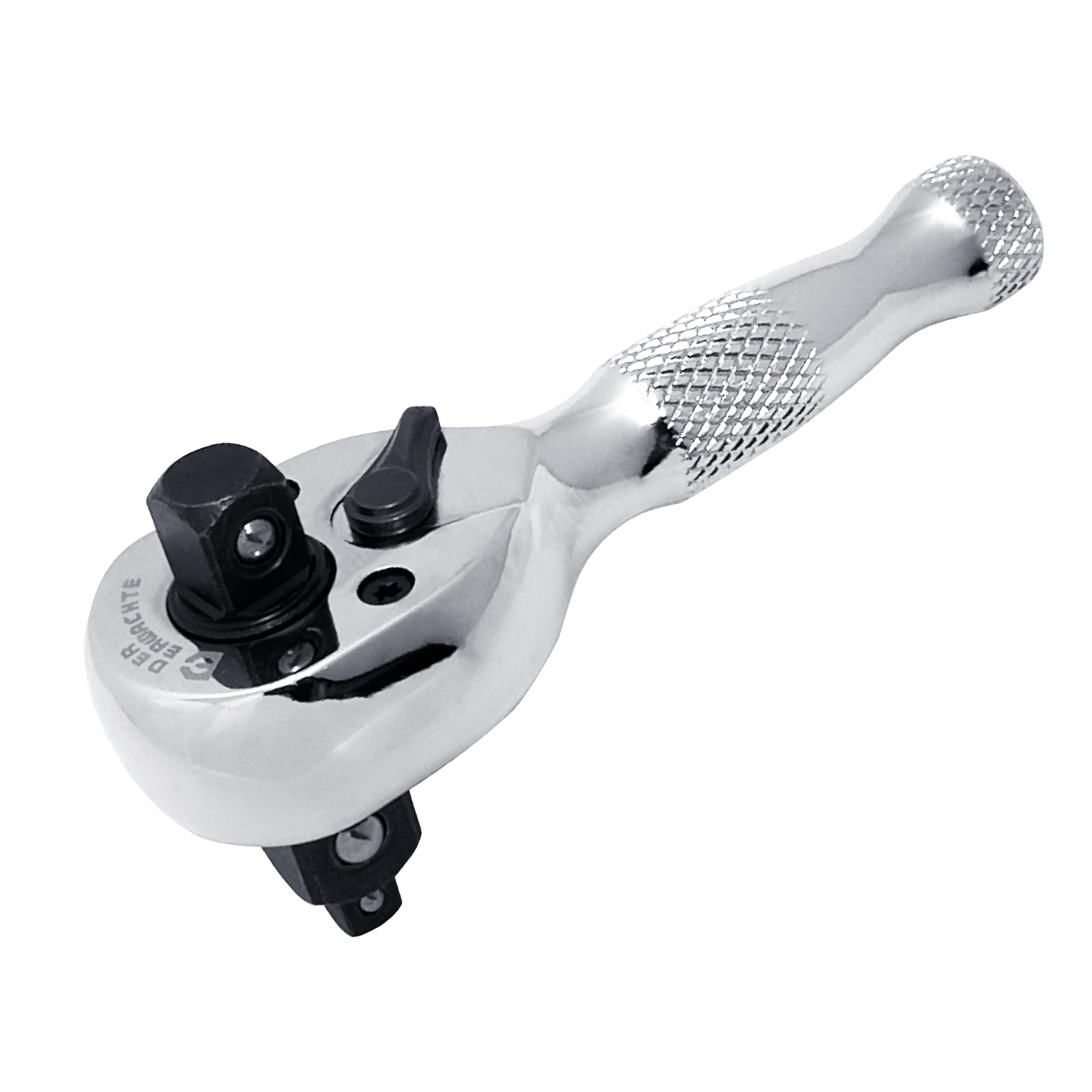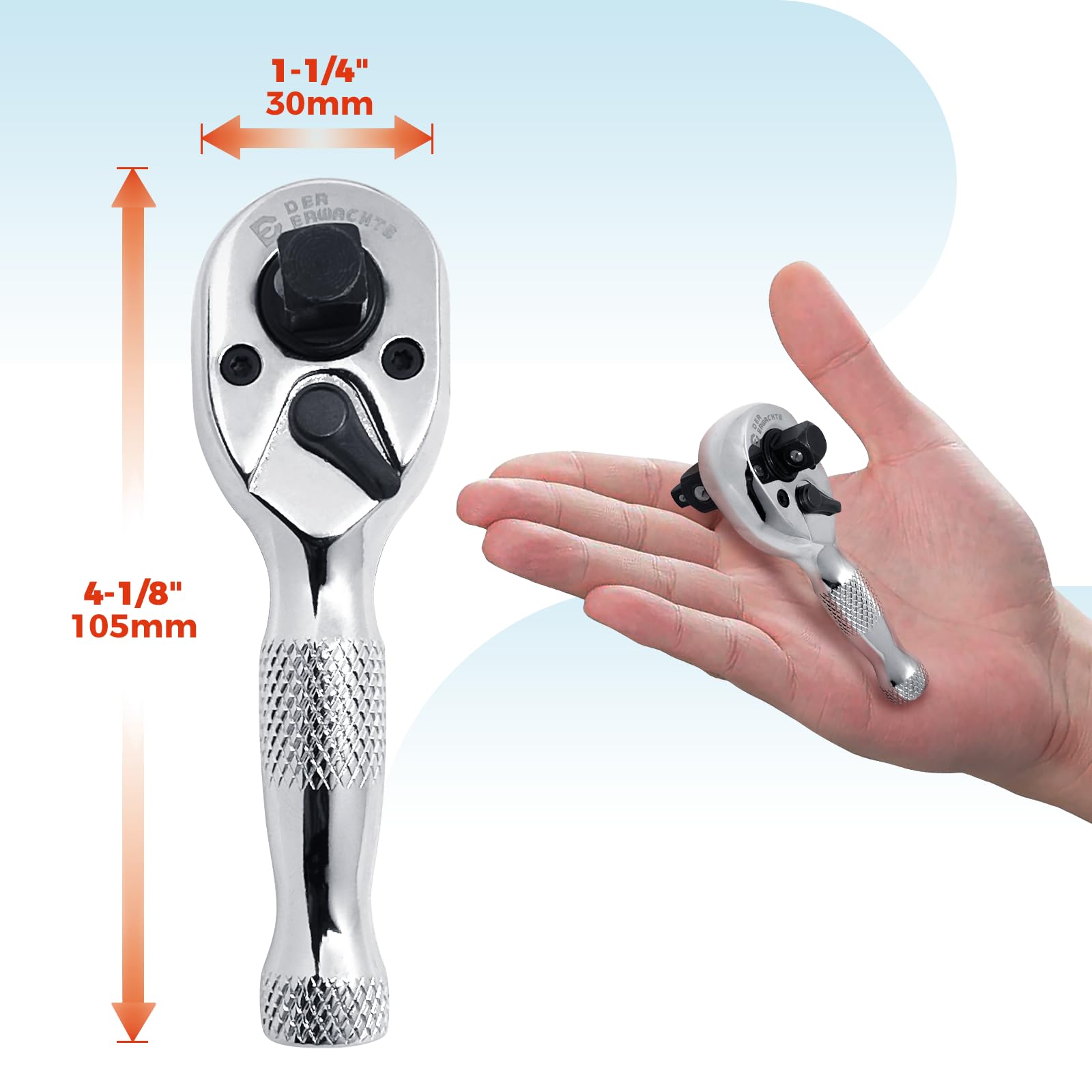 DER ERWACHTE 3-in-1 Stubby Ratchet Handle, 1/4 ", 3/8 ", 1/2" Drive Ratchet Wrench, 72-Tooth, Reversible Switch, Full-Polished Chrome Plating, Chromium Vanadium Steel