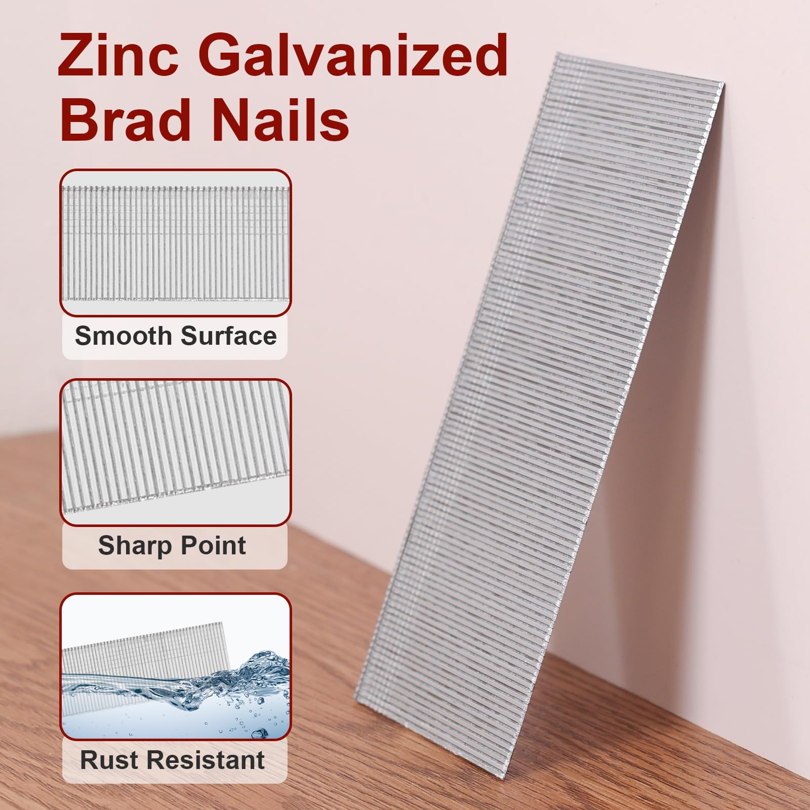 - SURFACE GALVANIZED: Each brad nail is meticulously coated with zinc, a protective layer that shields against rust ensuring the longevity and reliability of your nails in even the most demanding conditions.