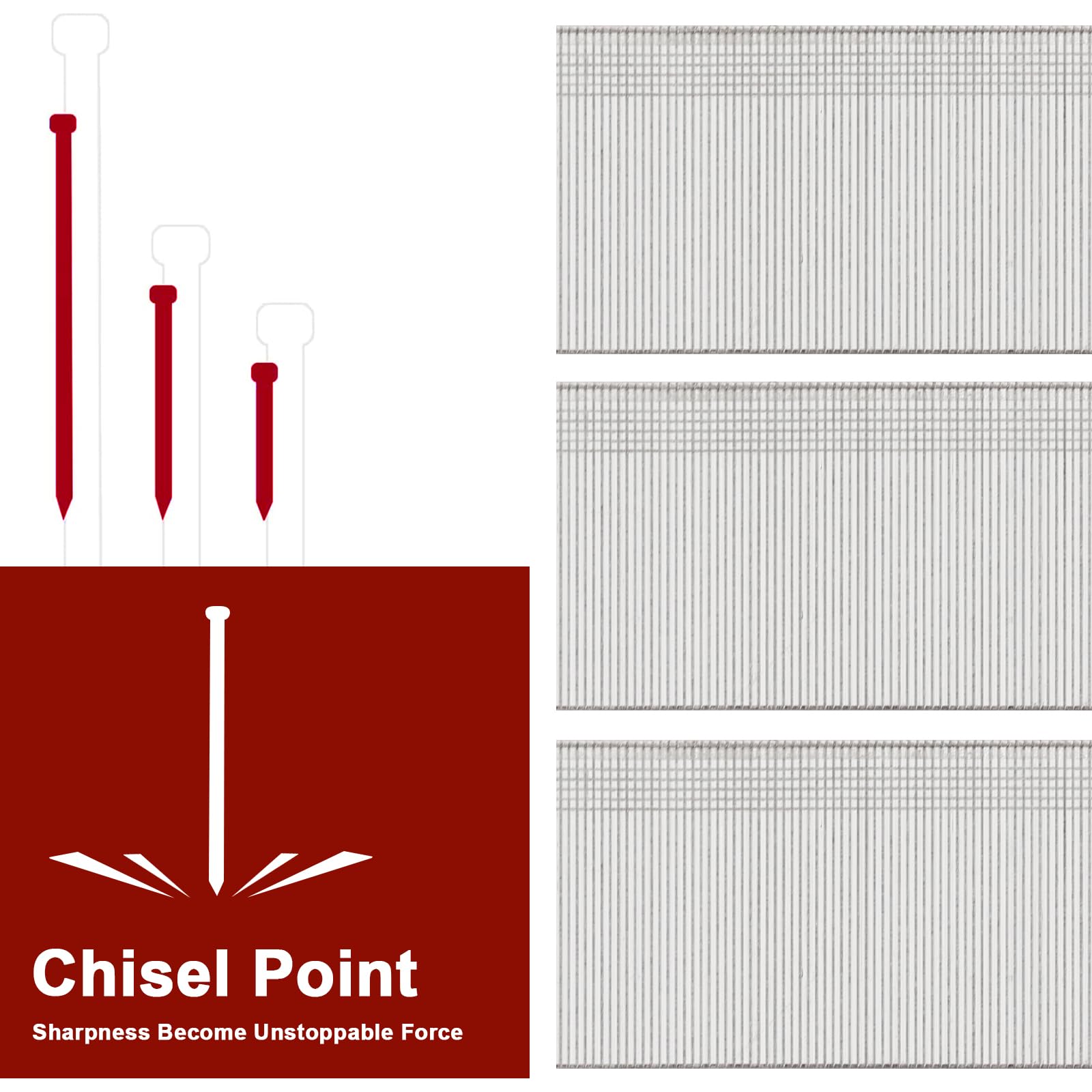 - SHARP CHISEL POINT: Our 18 GA brad nails boast a sharp chisel Point and a T-head design, engineered for effortless penetration into materials like fabric or thin wood. This innovative feature not only reduces the risk of nail jams in your nail gun but also enhances your overall work efficiency.