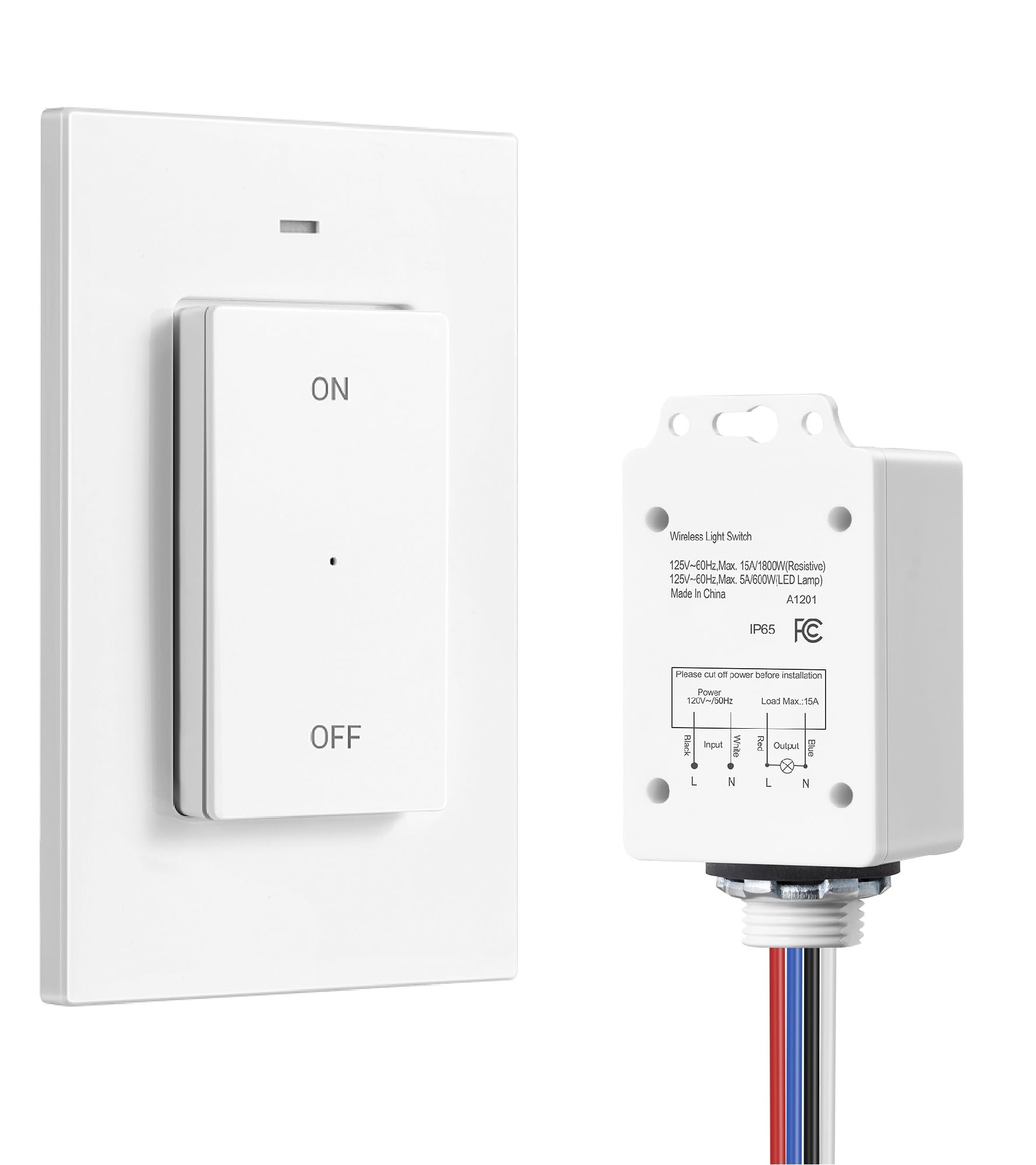 - [100FT Strong RF Signal] The wireless light switch with remote can penetrate walls and doors, offering an operating range of up to 100 feet; all-weather receiver is ideal for various locations, including attics, lofts, and outdoor environments