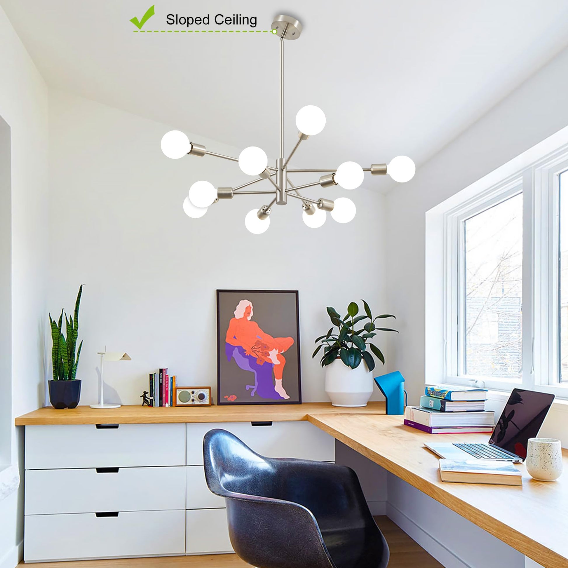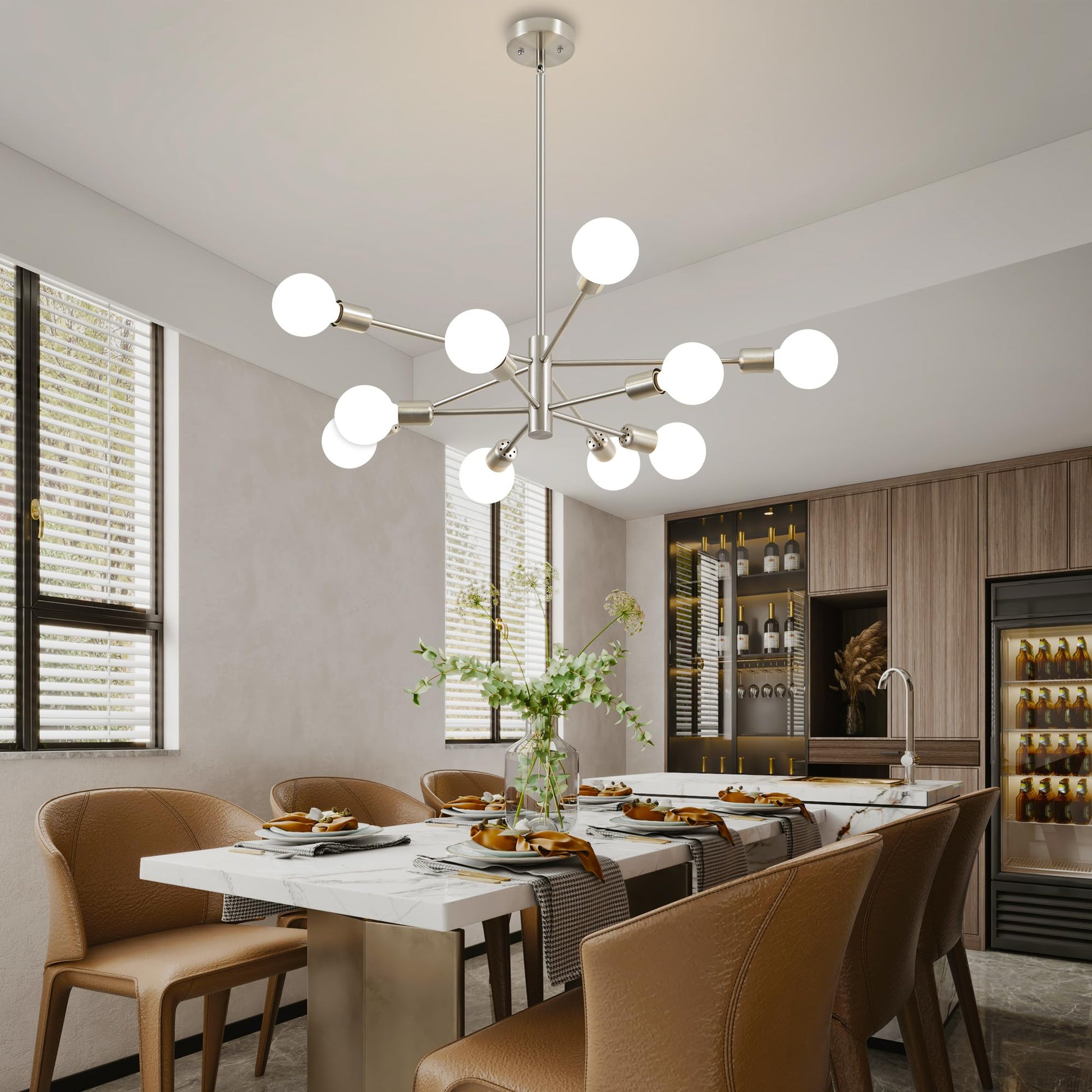 Deyidn Sputnik Chandelier Modern Brushed Nickel Chandeliers Mid Century Ceiling Lighting Fixture for Living Room, Kitchen, Bedroom, Dining Room, and Farmhouse (10-Light)