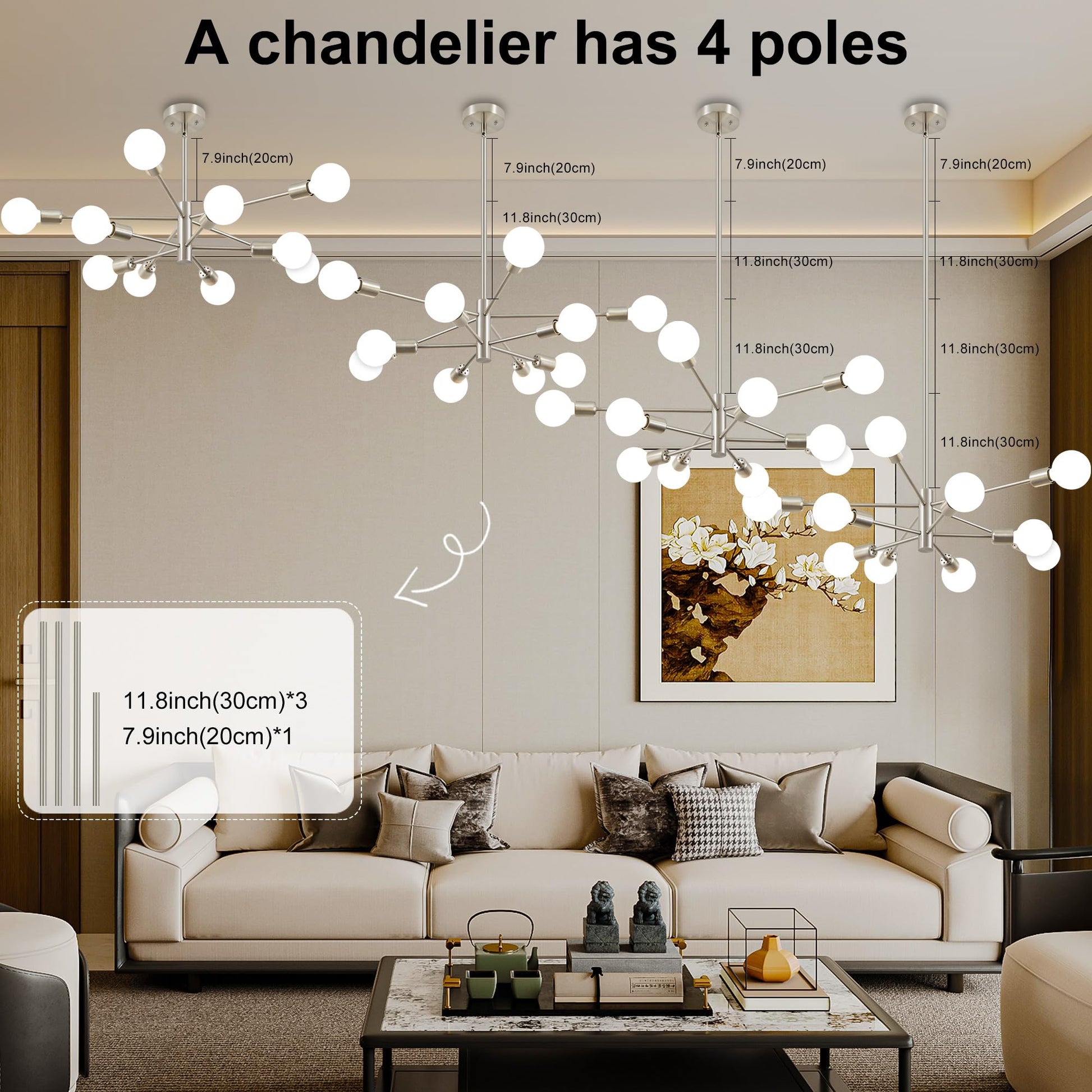 - Easy to Install: This sputnik chandelier includes all mounting hardware for quick and easy installation(Note: When installing the lamp arm, please tighten the lamp arm to avoid the situation where the lamp arm is not straight and slightly bent)