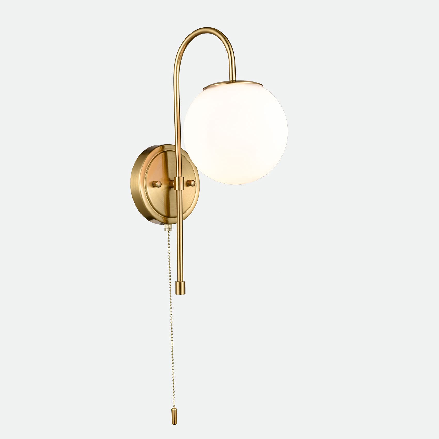 - FEATURE:Features milky white globe glass and a pull chain switch in brass finish,the wall sconce adding a touch of classic / contemporary / modern style to your home.