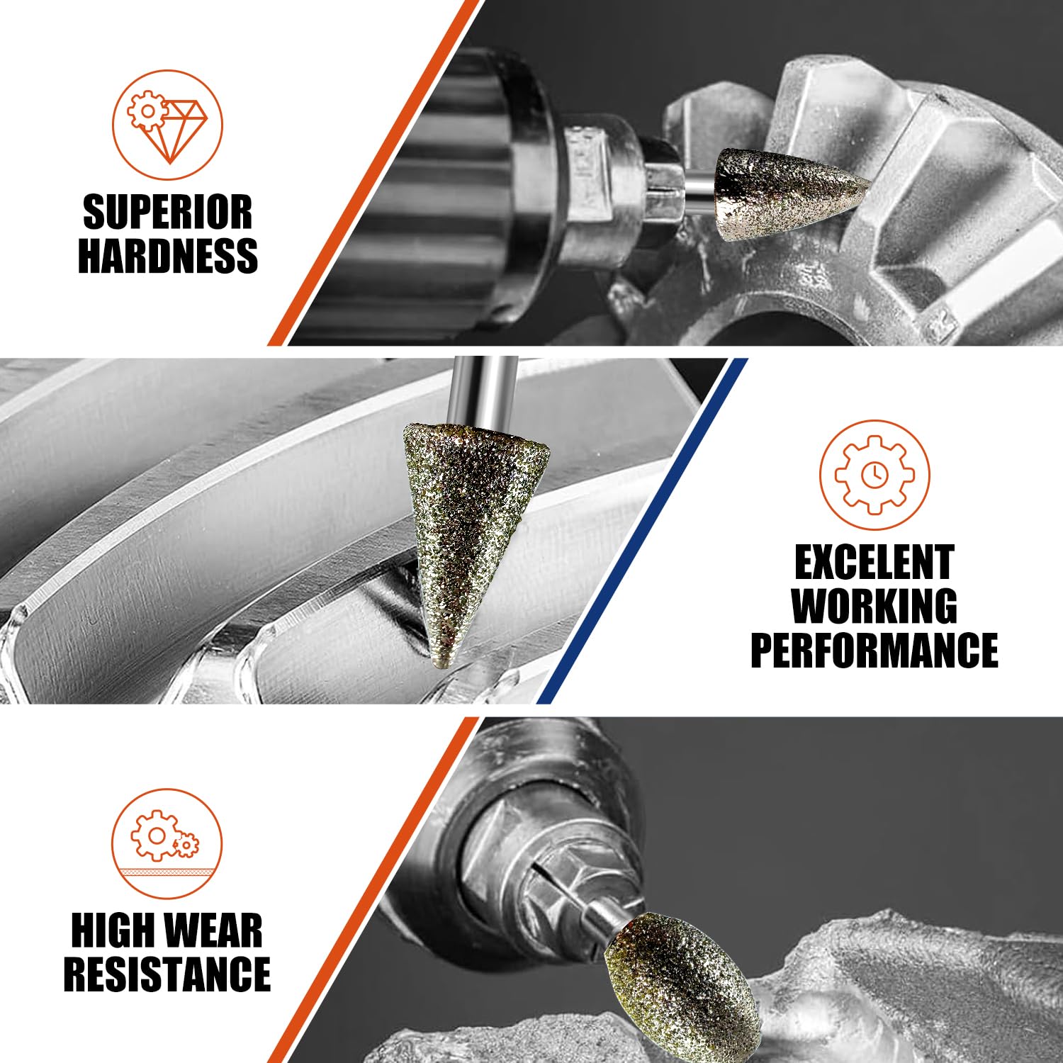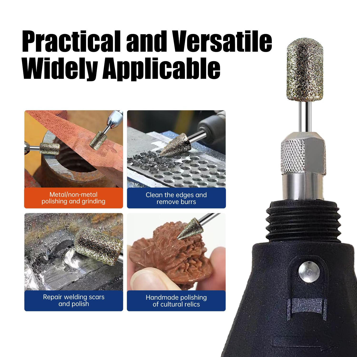 - 120-GRIT DIAMOND GRINDING BITS: Bit head surface is completely coated with fine diamond particles, with high grinding efficiency, high durability and stable quality, and safer to use.