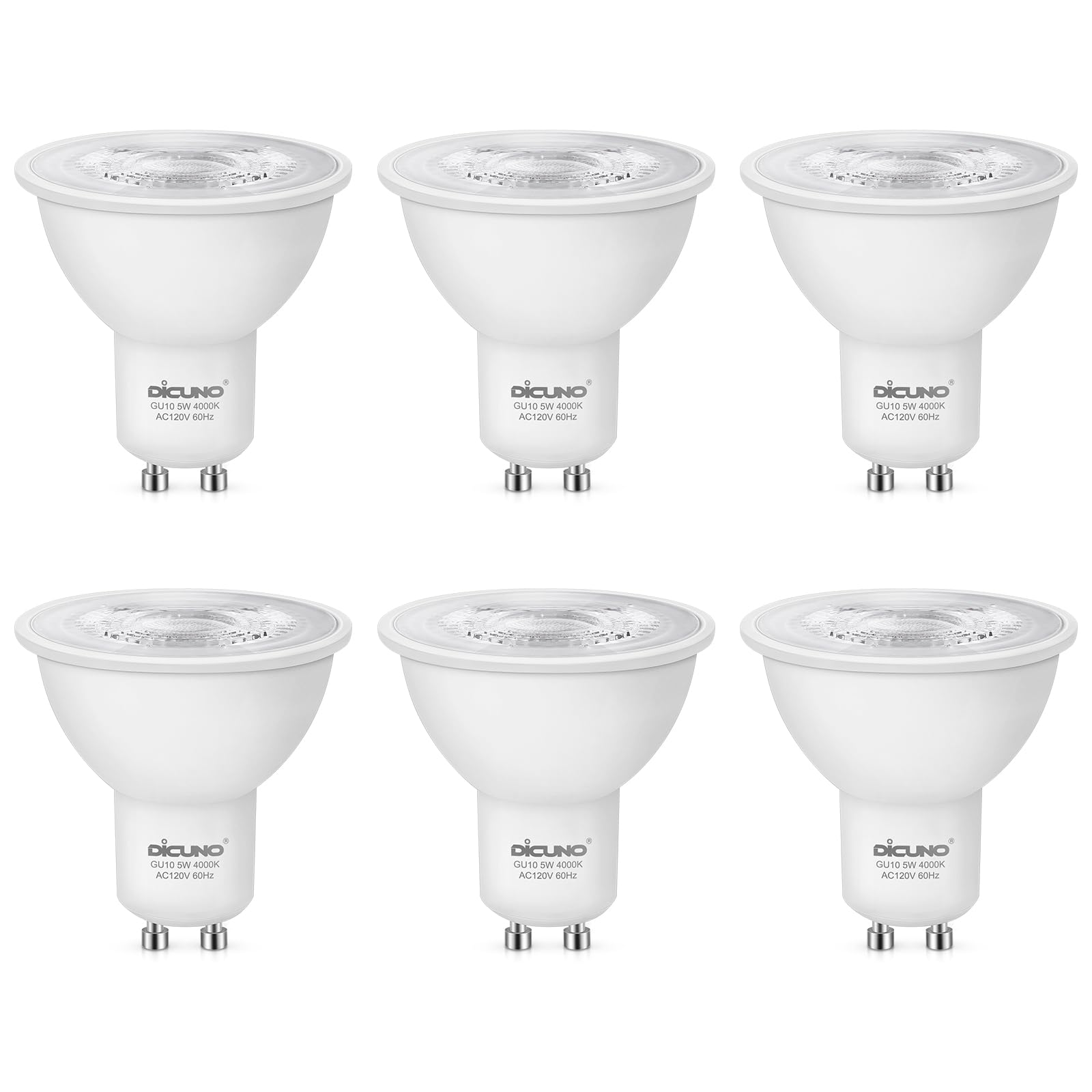 DiCUNO GU10 LED Bulb, 40W Equivalent, Natural White 4000K, Non-Dimmable, 450LM, MR16 GU10 LED for Spotlight, Track Lighting, 5W Recessed Ceiling Light Bulb with 38° Beam for Kitchen, Pack of 6