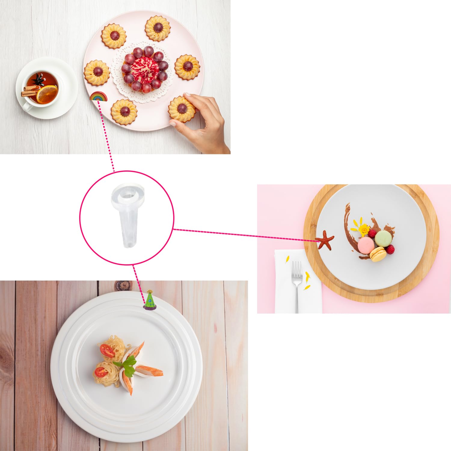 Additionally, silicone material is easy to clean; simply wipe with warm water and detergent to maintain cleanliness. Whether it's for family gatherings or special occasions, this silicone stem set brings endless fun and creativity to your table.