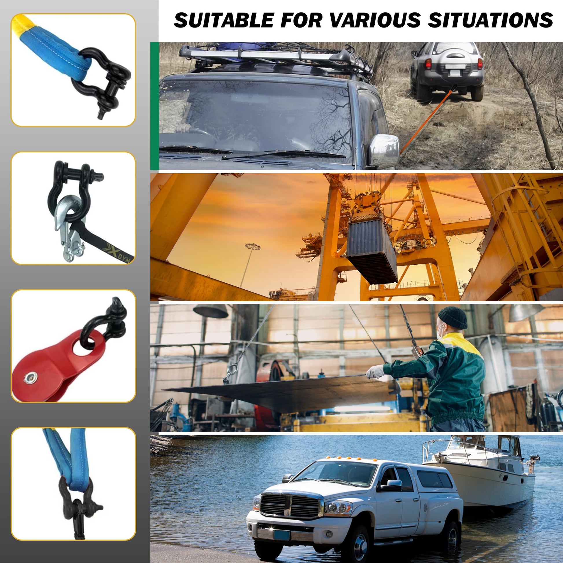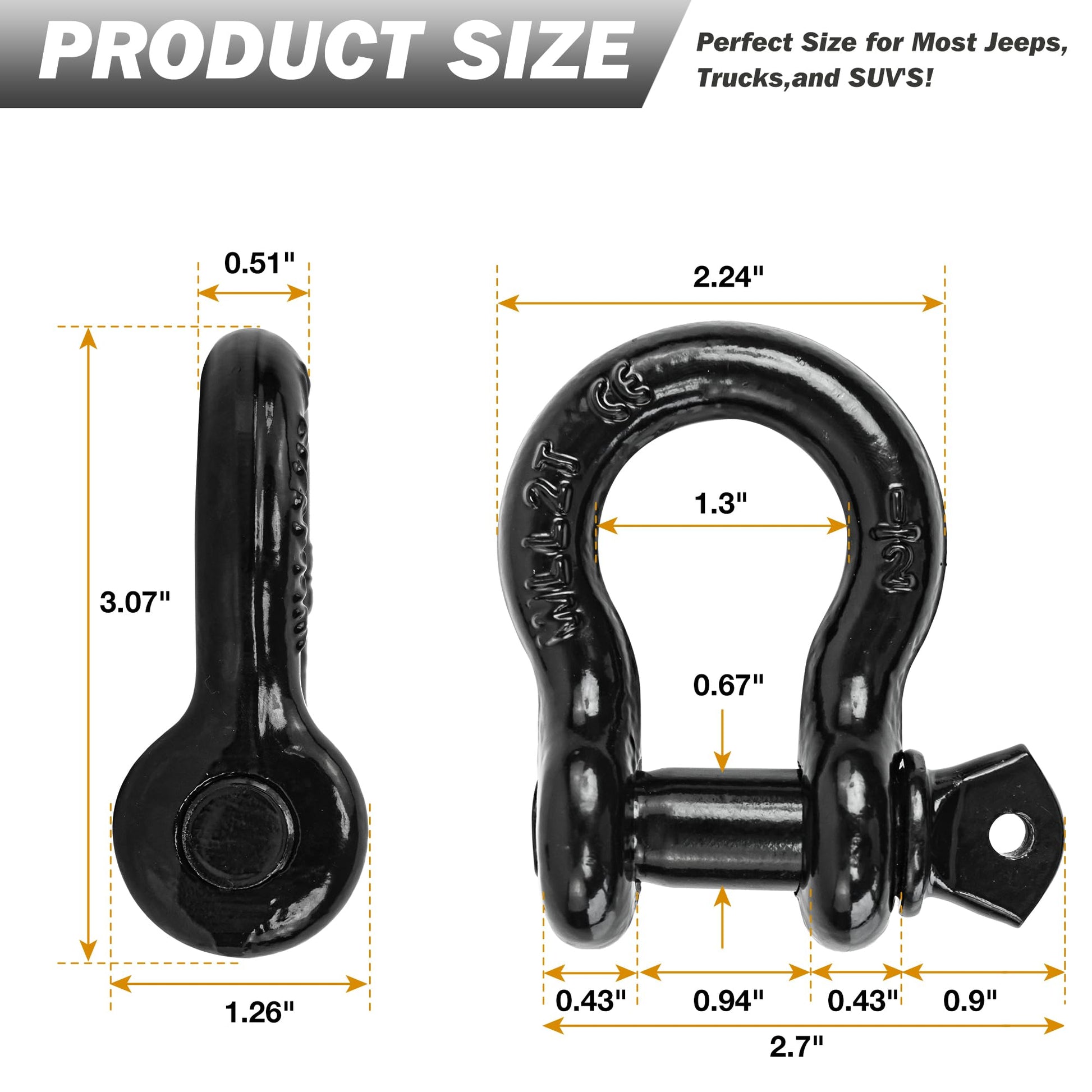 - 1/2" D ring shackles and 9/16" pins are combined without gaps, reducing additional collisions, thus ensuring they will not come off again at high speeds