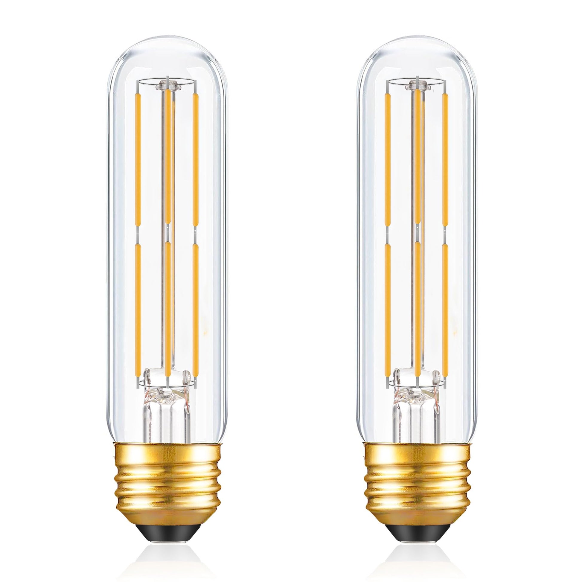 Dimmable E26 T10 LED Bulb Tube Light Bulbs 6W(60W Equivalent),Tubular Light Bulb Type T Long Thin Skinny Light Bulbs for Curio Cabinet,Piano Light,Chandelier,Hutch,2700K Solf White 600LM,2 Pack