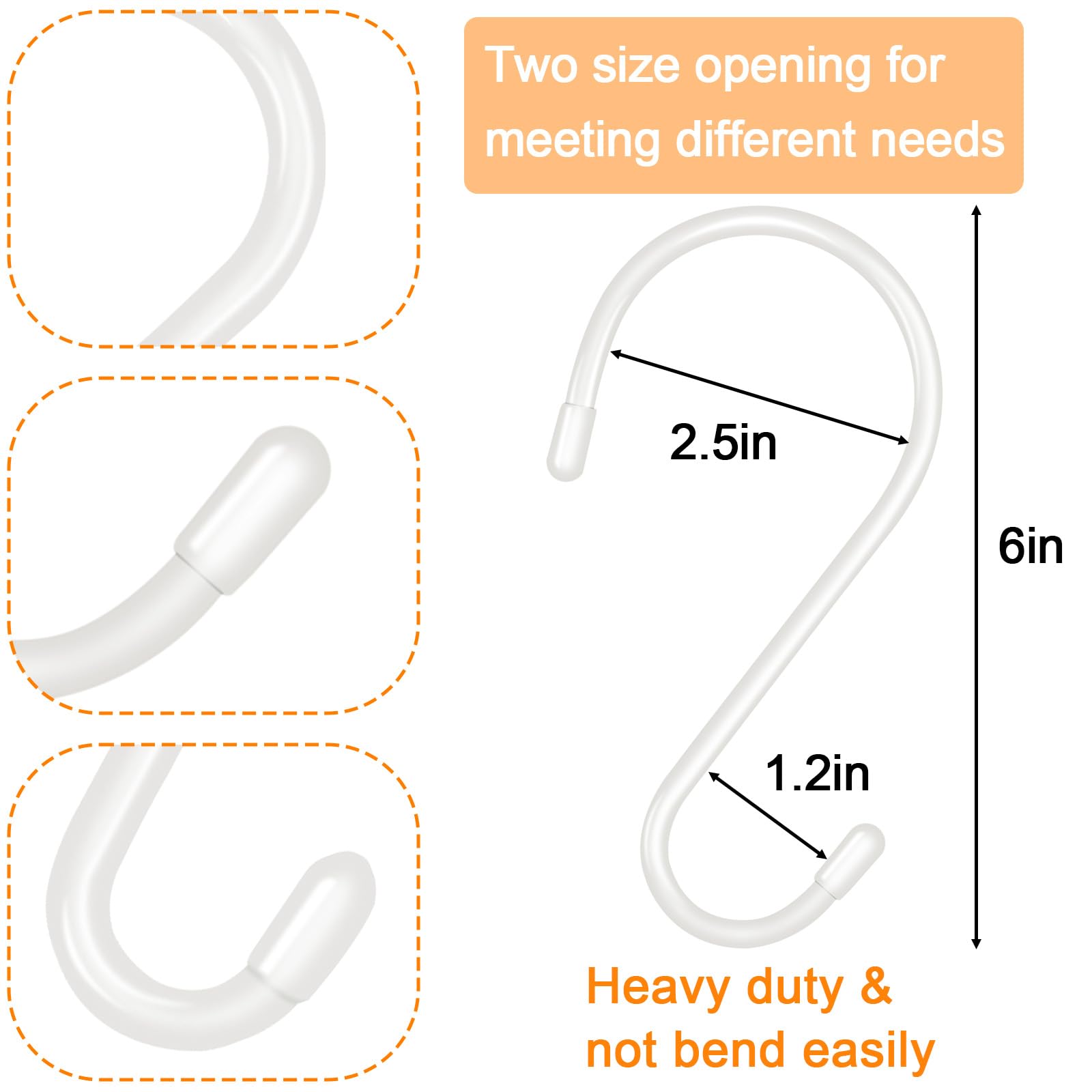 - White Rubber Coated Hooks Size:These closet s hooks measure 6 inch in length, the large side opening is 2.5 inch,the small side opening is 1.2 inch,Two size opening could meet different needs,could fit any standard closet rod.