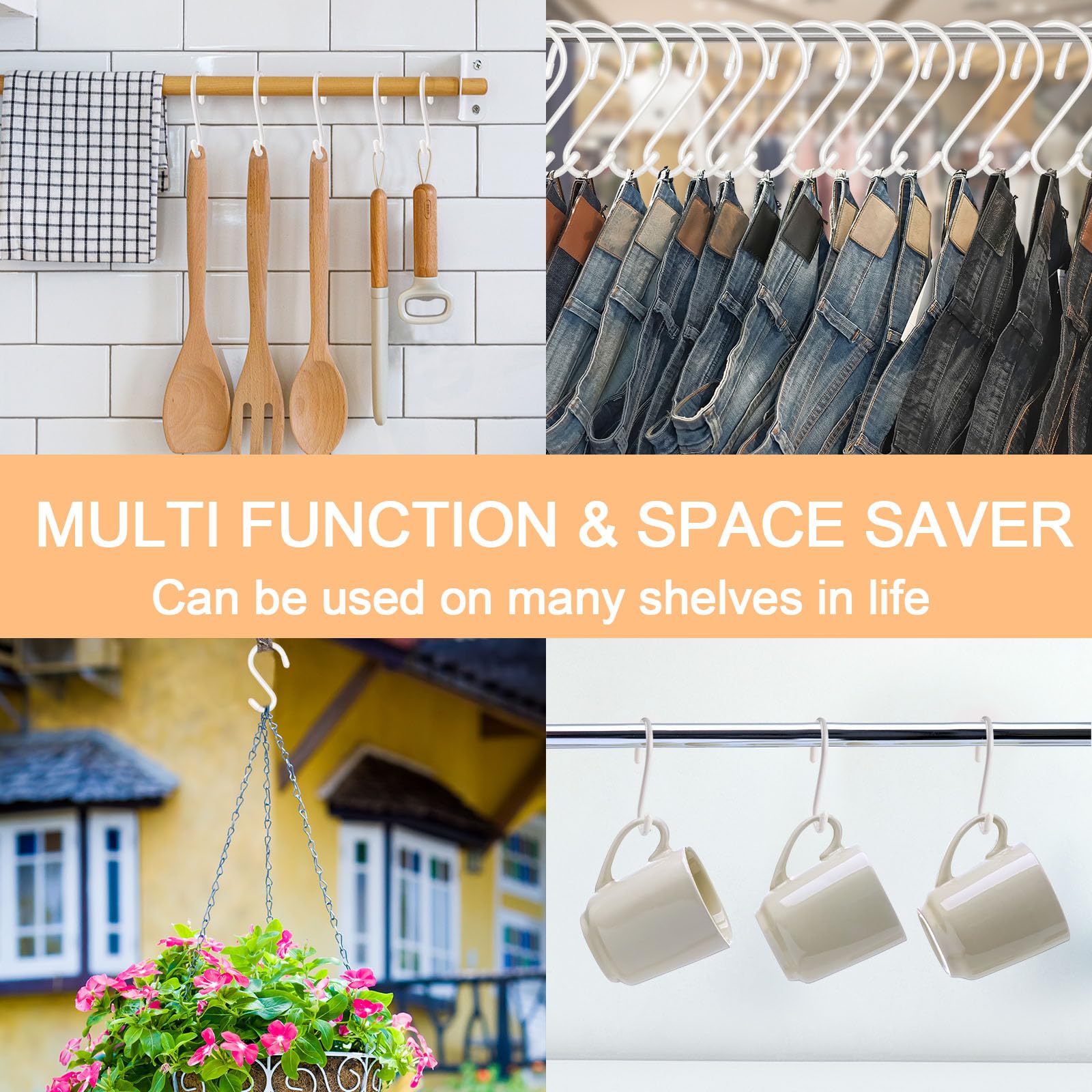 - Rubber Coated Non-Slip Hooks:Our large s hook surface are coated with vinyl rubber and two rubber stopper on the end,which is rust-resistant, slipping and resist falling , you don't need to worry that these hooks would scratch your clothes or purse,scarf, jeans among using, and these closet s hooks would not Fall off when you remove the item.