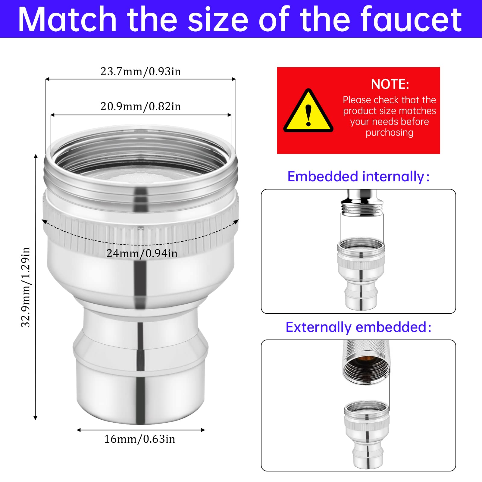 - PRODUCT SIZE - Faucet adapter inside thread is 55/64 -27F, outside thread is 15/16-27M, please check the size before purchasing.