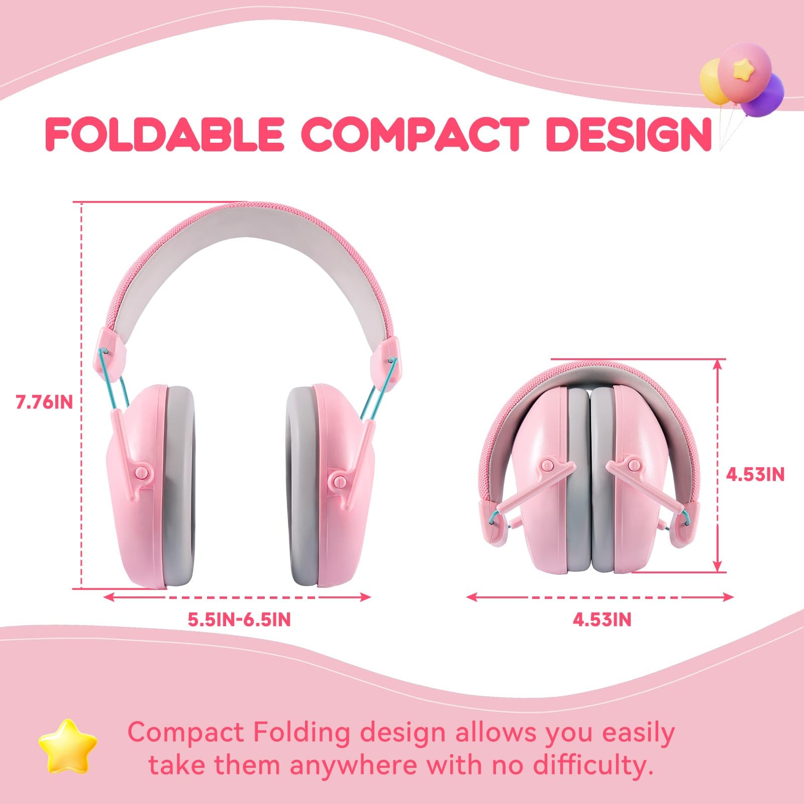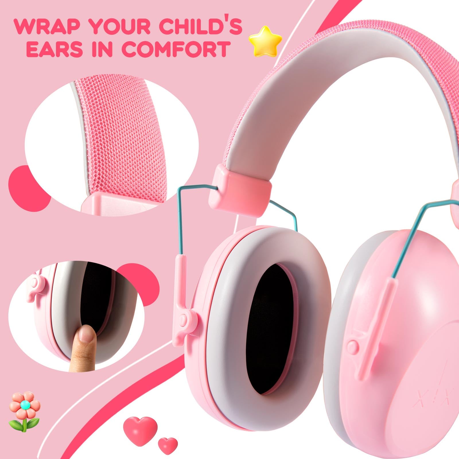 Dison Noise Cancelling Headphones for Kids, Kids Ear Protection NRR 26dB Noise Reduction Ear Muffs for Concerts, Fireworks, Shooting Pink