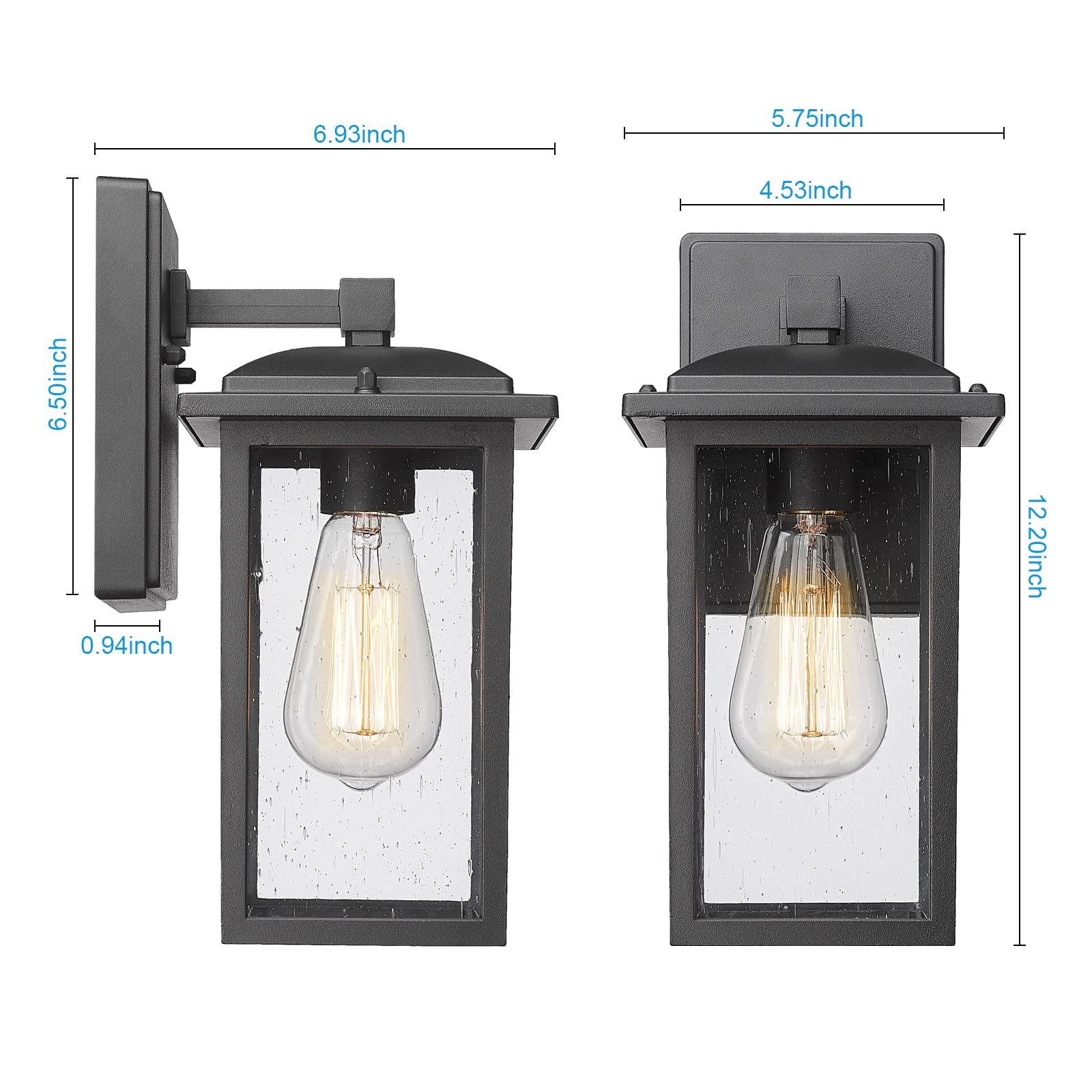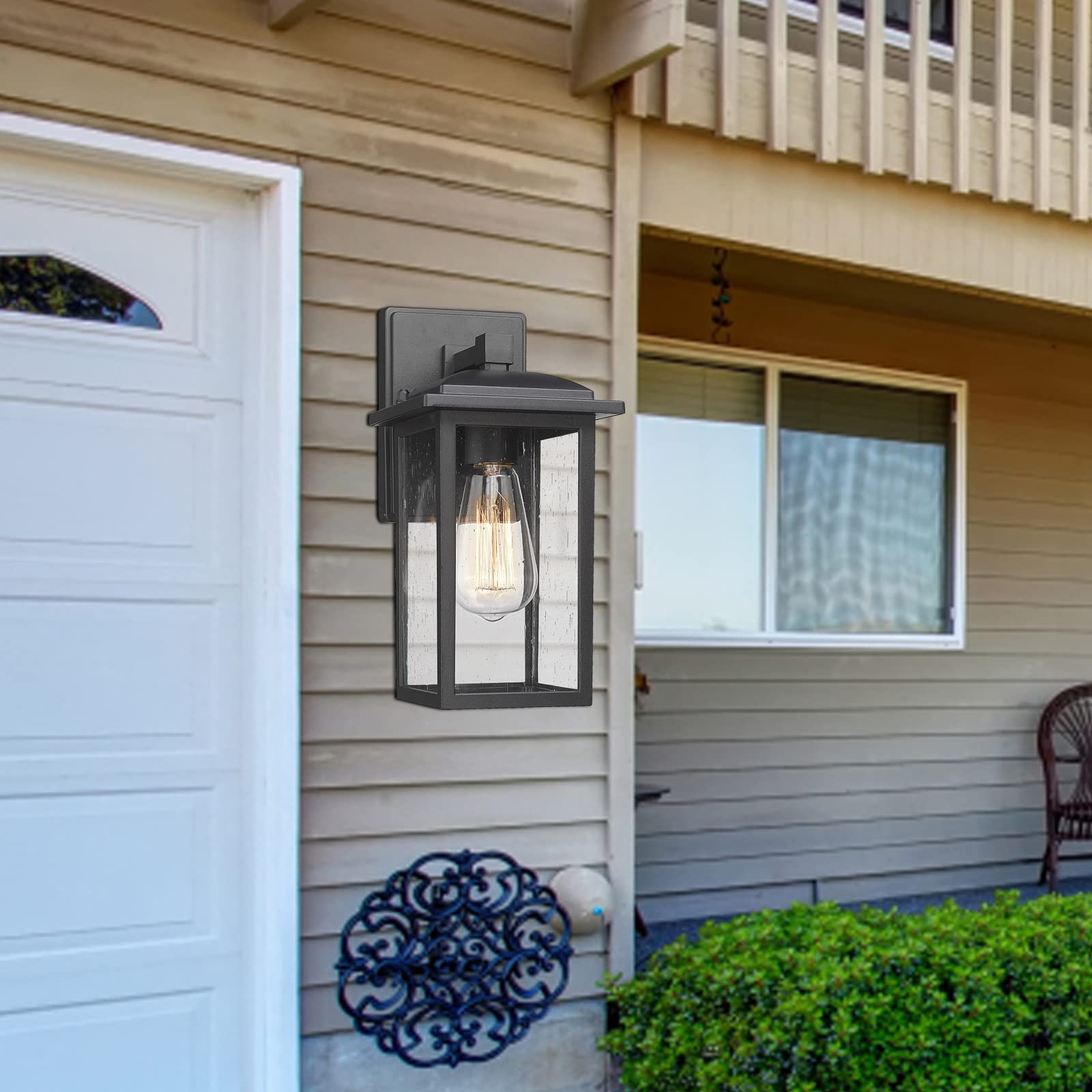 - 💡 STYLISH MODERN WALL SCONCES: Crafted with sleek matte black metal frames and seeded glass, these outdoor wall sconces blend modern simplicity with vintage elegance. Perfectly complement your outdoor patio décor and enhance the beauty of your home