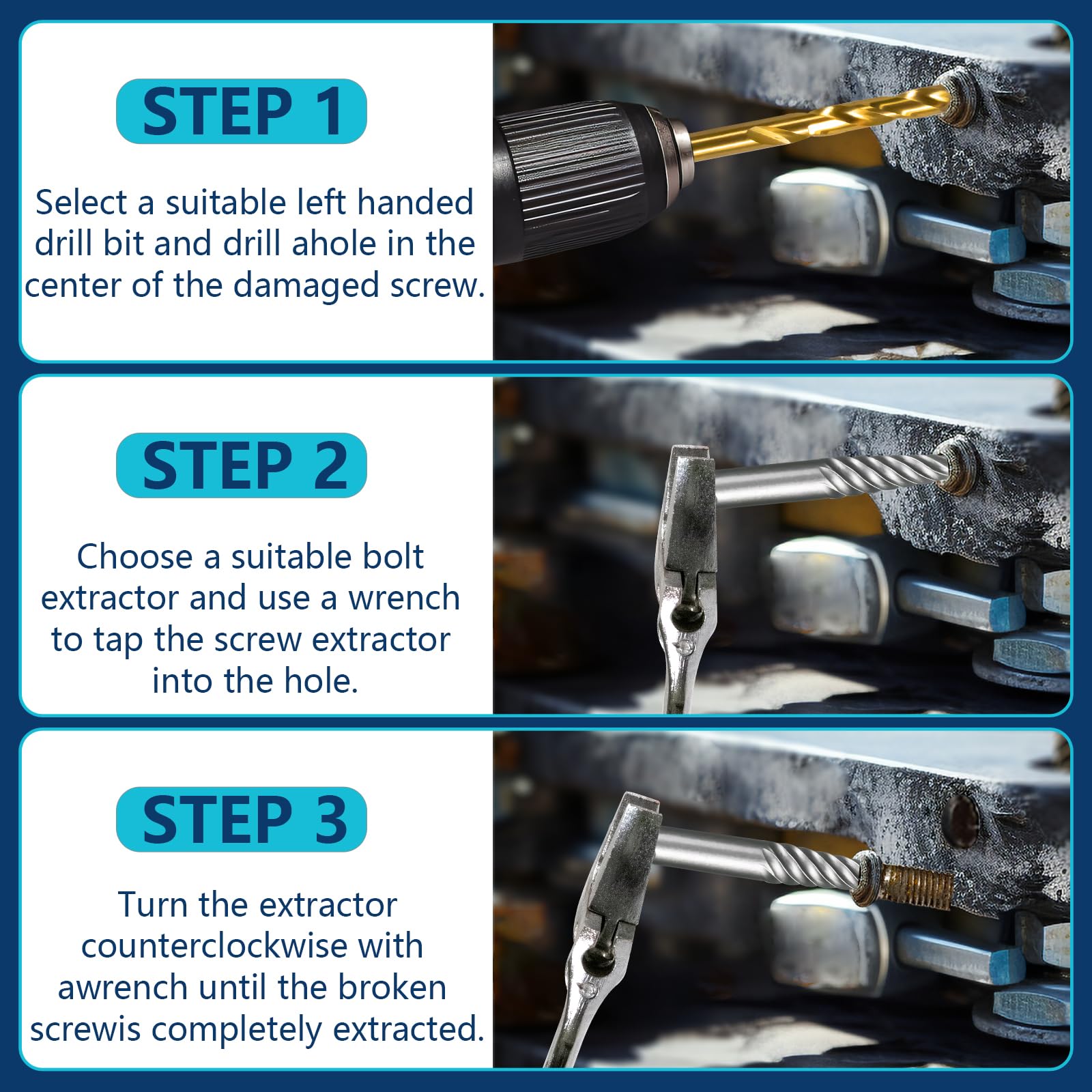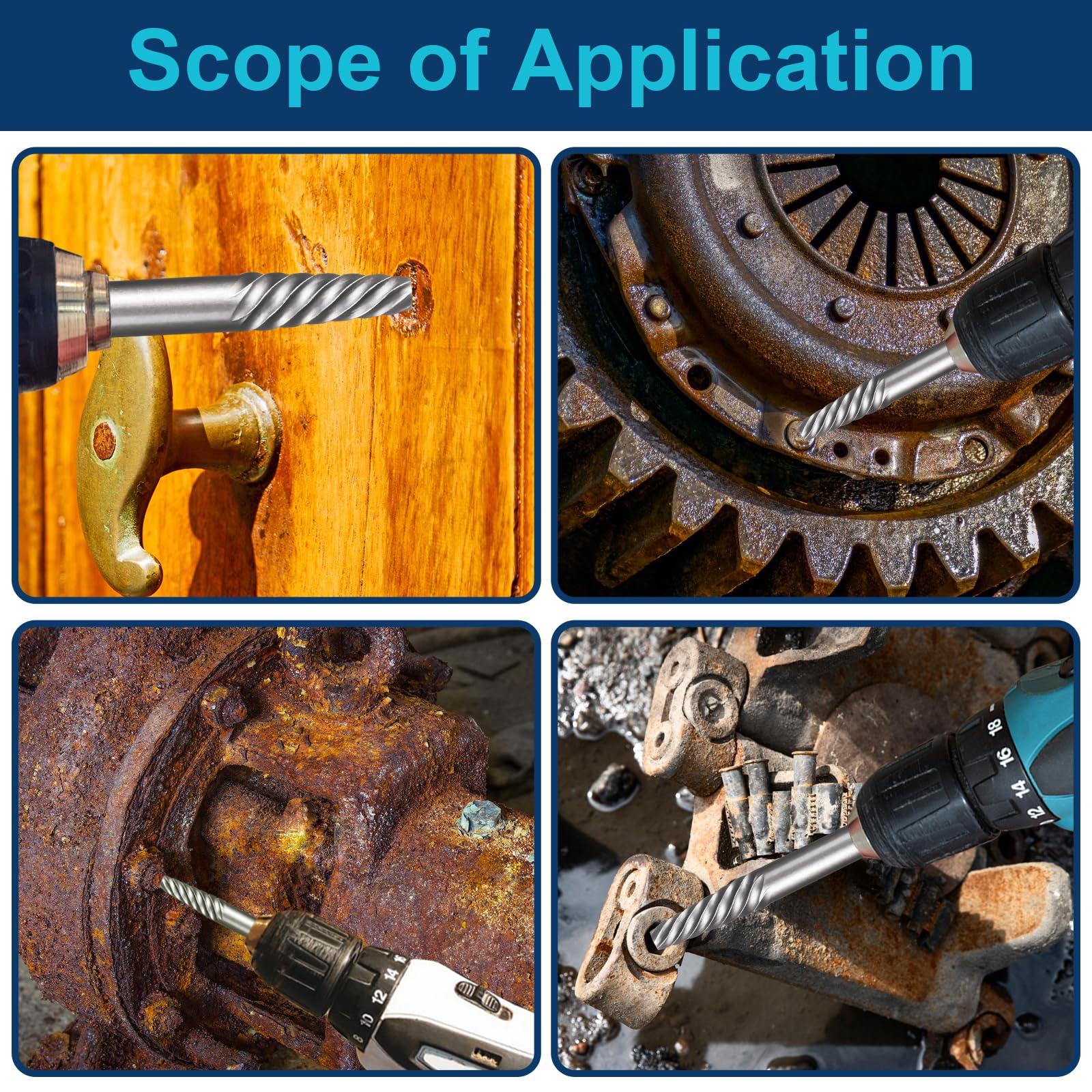 - Versatile Applications: Helps remove rusted, damaged or broken screws, bolts and studs and all types of fasteners faster. Ideal screw extractor set for both automotive repair, construction, home improvement projects and industrial use