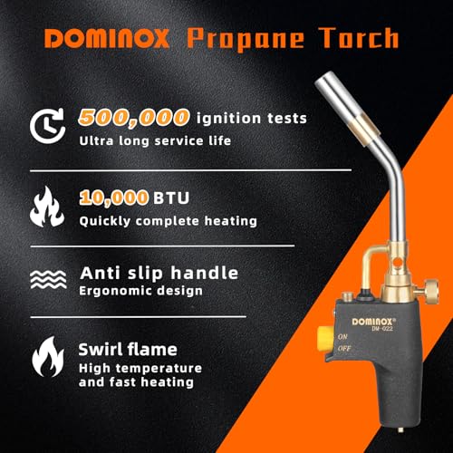 - ¡¼Buy Trigger Start Gas Torch¡½DOMINOX trigger start gas torch has reliable quality, stable ignition, simple operation, safety and durability, and can be purchased and used with confidence, enjoy our 3 years warranty, If you encounter any problems after purchasing the brazing torch, feel free to contact our team at any time and we are happy to assist you.