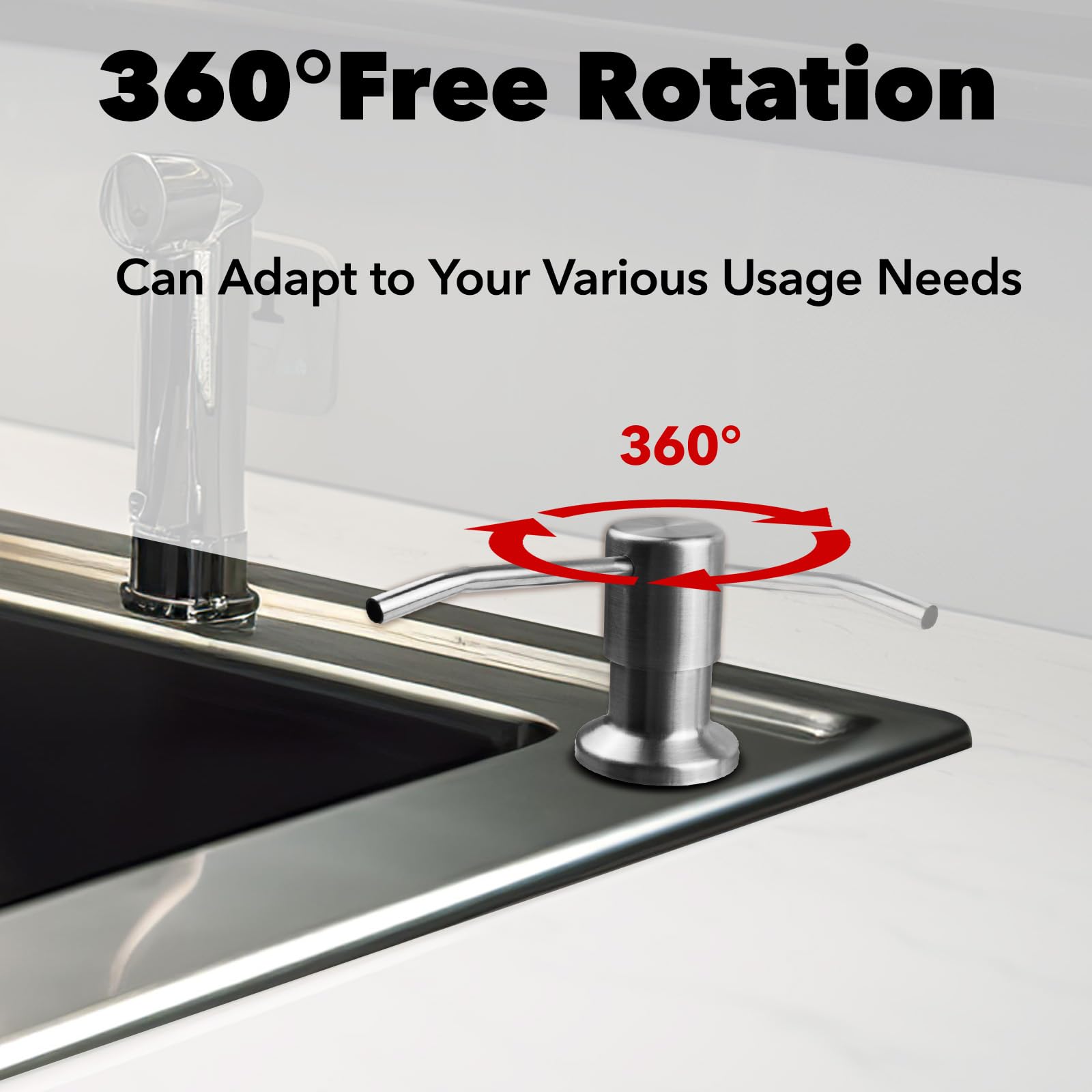 - Humanized design: The excellent design of our dish soap dispenser for kitchen includes a 360-degree rotatable pump that is flexible and easy to clean,a 47.24-inch silicone extension tube that can be directly connected to the large soap container at the bottom of the sink to avoid frequent refilling,and the included check valve,gravity ball,and three different sizes of bottle mouth sealing plugs to better ensure stable liquid discharge.The buckle in the kit allows you to fix the silicone tube in the appropriate position,giving you a neater storage space.Various design considerations are only to solve your kitchen chores and add elegance and ease to your life